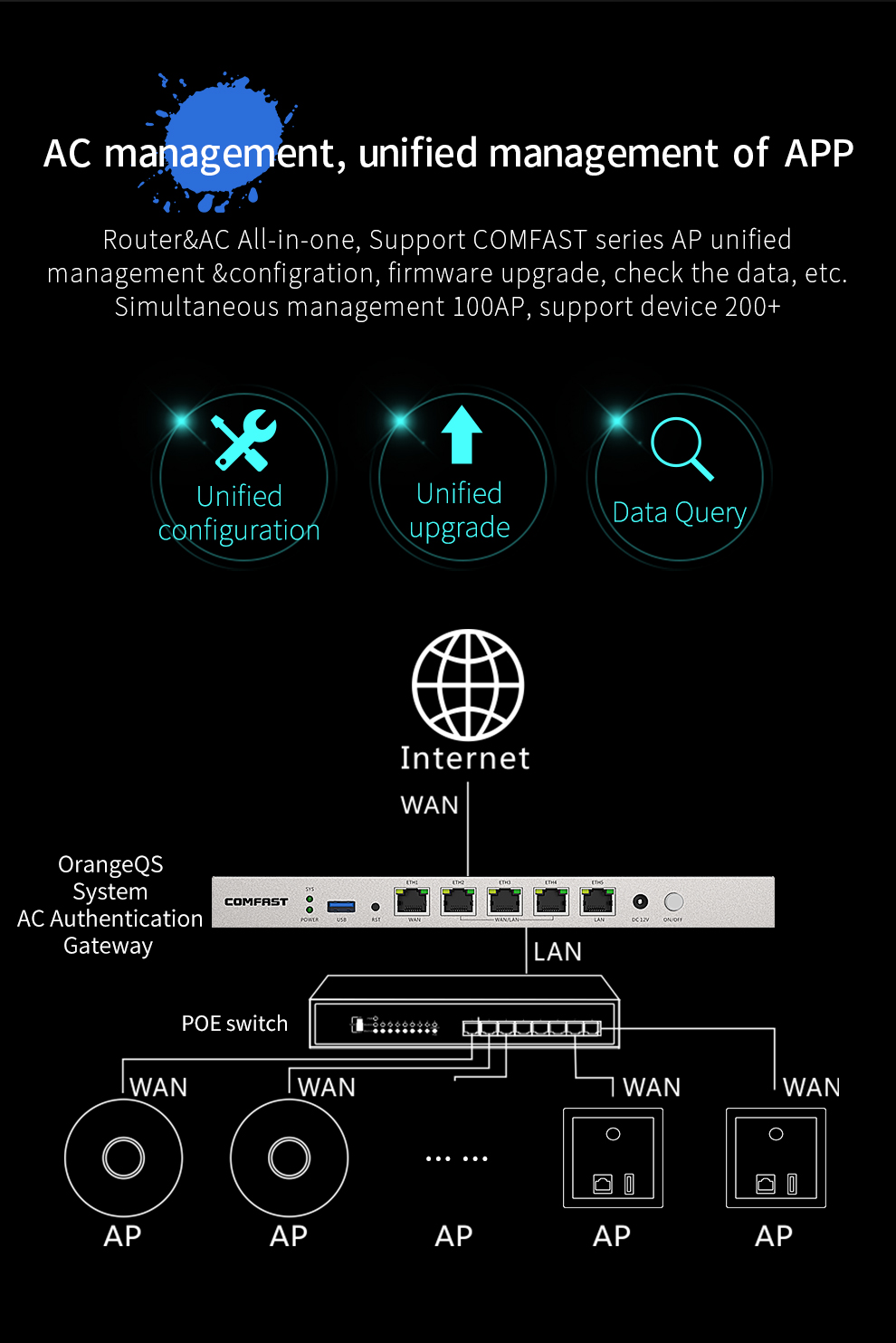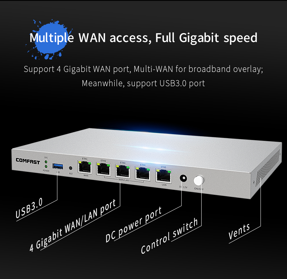 *The product images and demonstration scenarios on this page are for illustrative purposes only and may have slight differences from the actual product. Please refer to the physical product for accuracy. *The data on this page are theoretical values obtained from COMFAST’s internal laboratory under specific testing conditions. Actual usage may vary due to individual product differences, software versions, usage conditions, and environmental factors. Please refer to real-world usage for accurate representation. *To provide as accurate product information, specifications, and features as possible, COMFAST may periodically adjust and revise the text descriptions, image effects, and other content on this page to ensure alignment with actual product performance, specifications, packaging, and accessories. Should such adjustments or revisions become necessary, no prior notice will be provided.