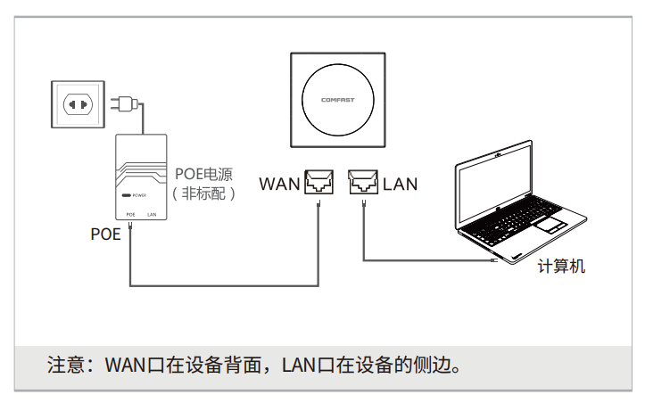 (2) Connect the PC and the device’s LAN port with an Ethernet cable.