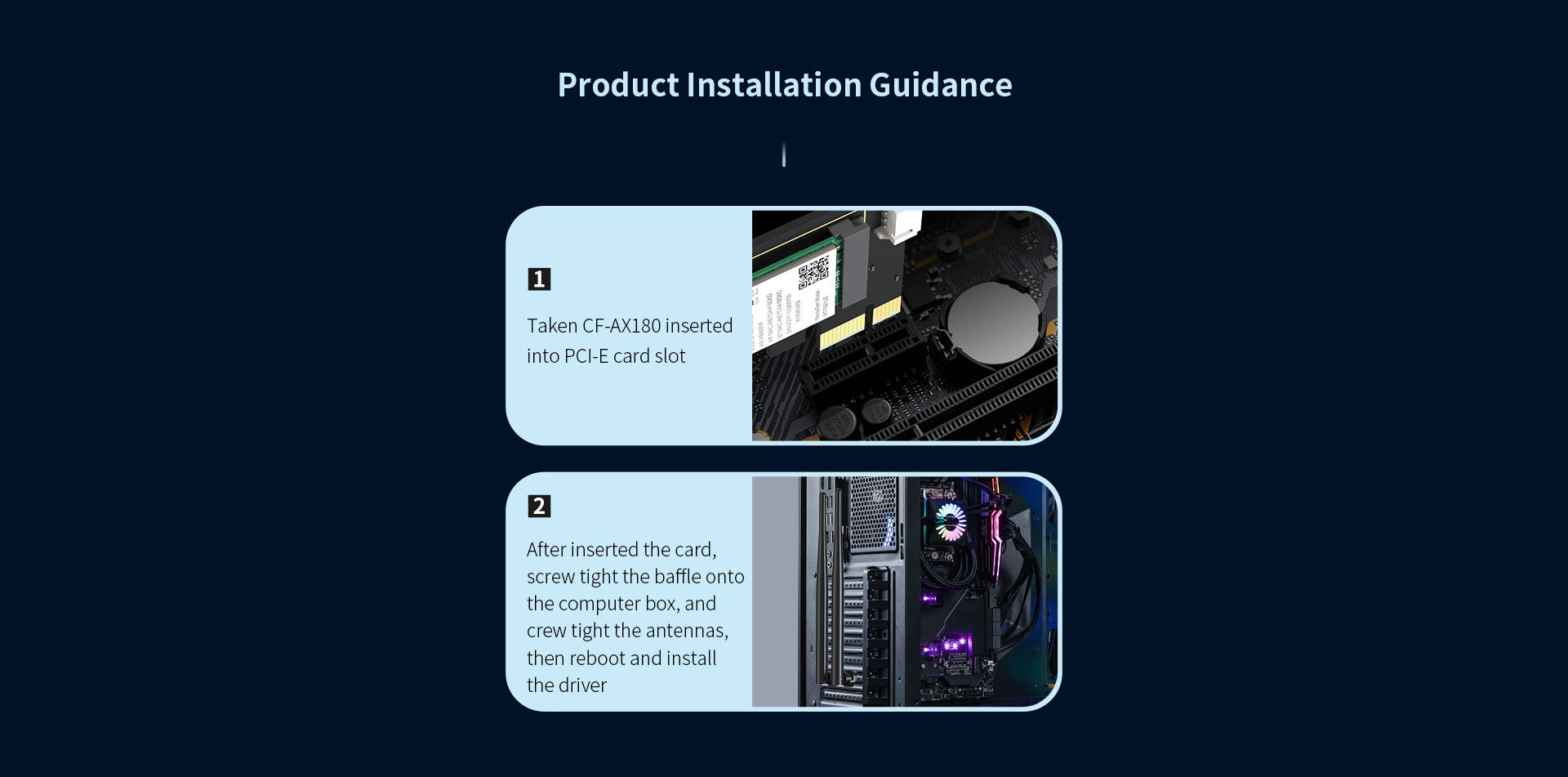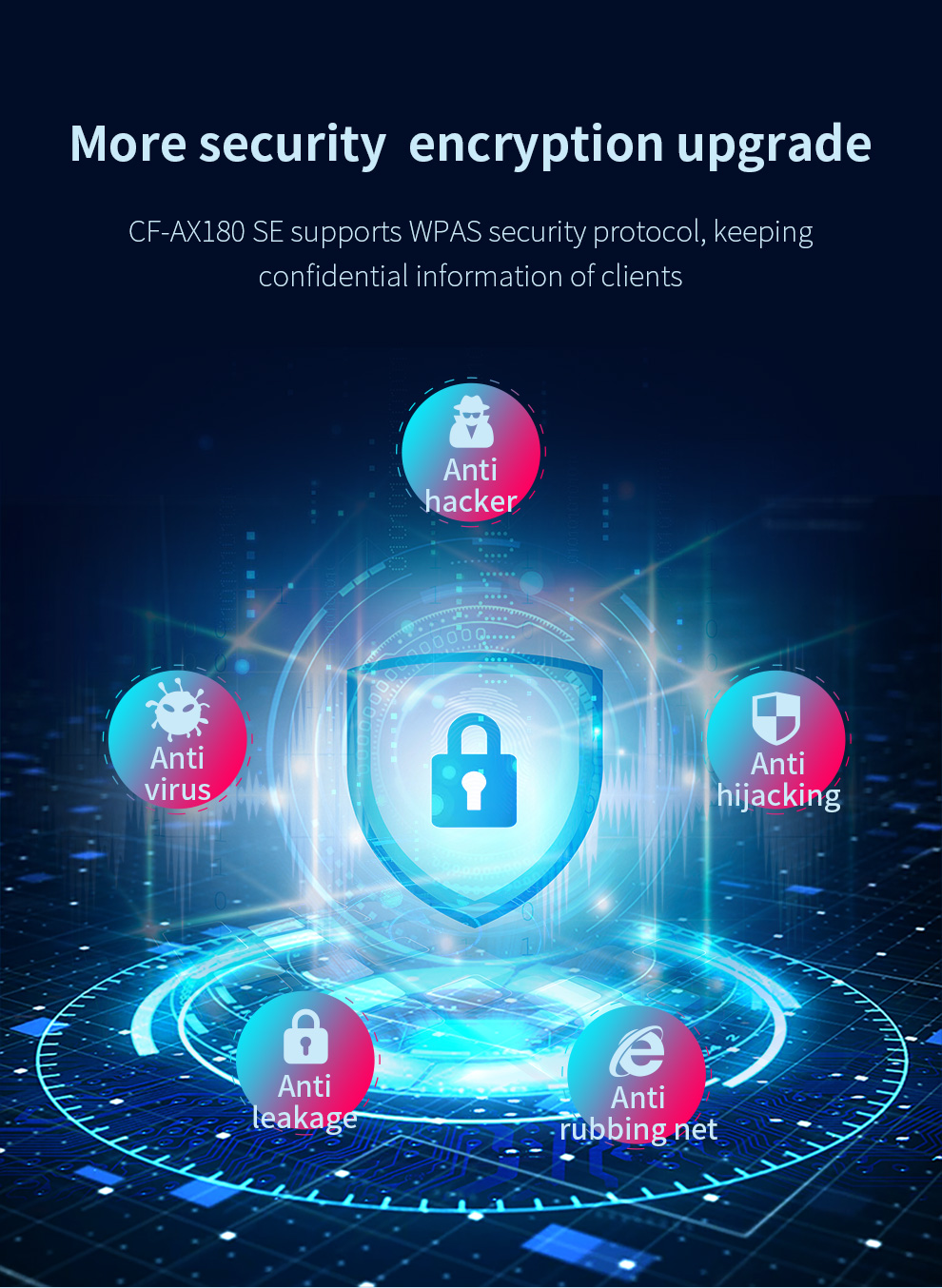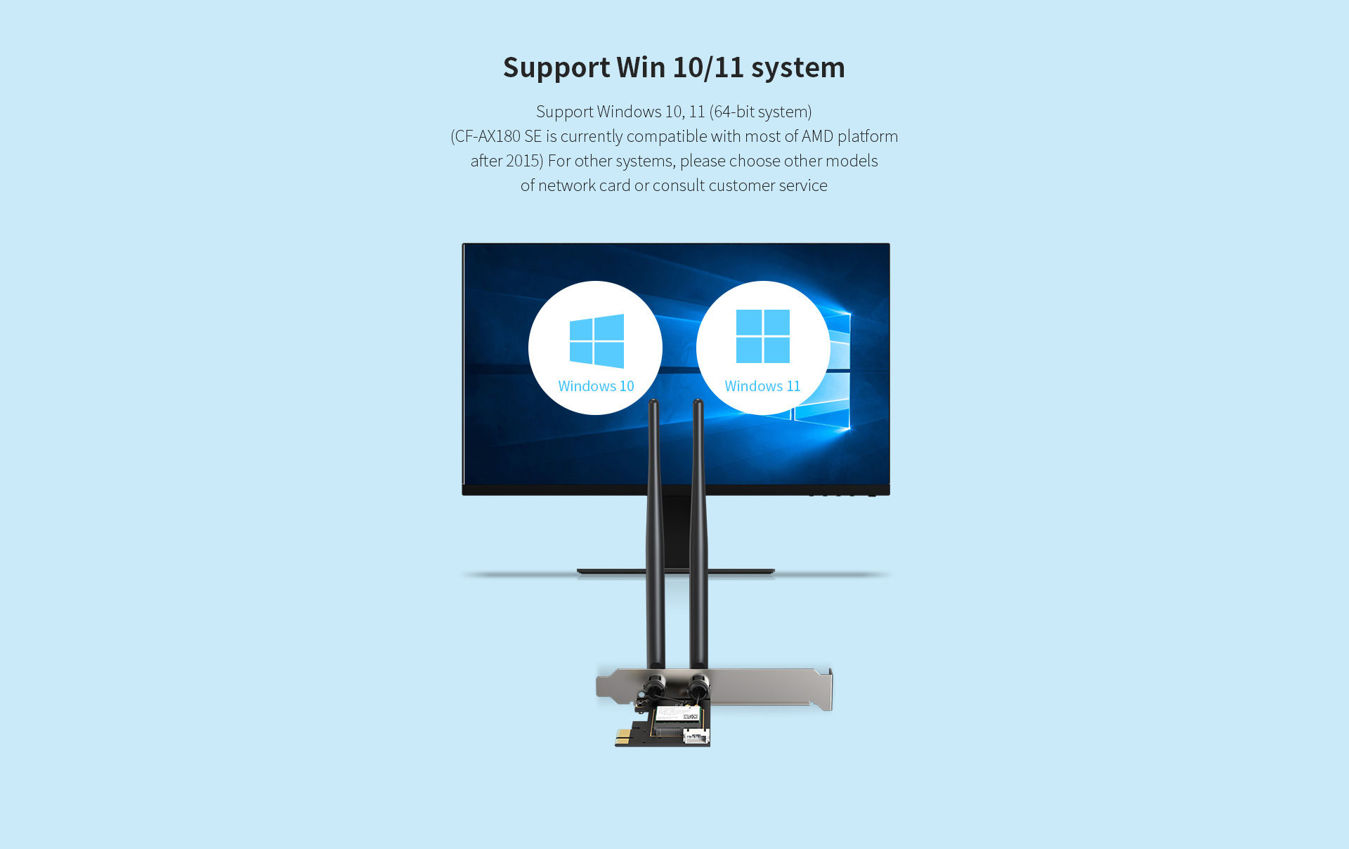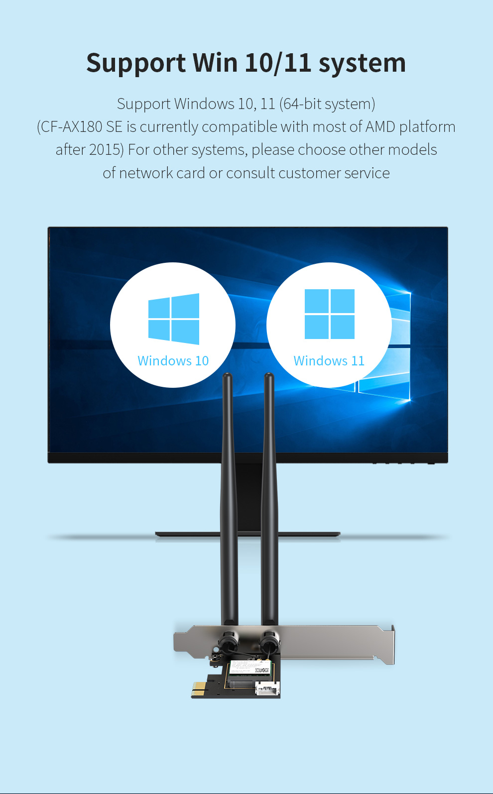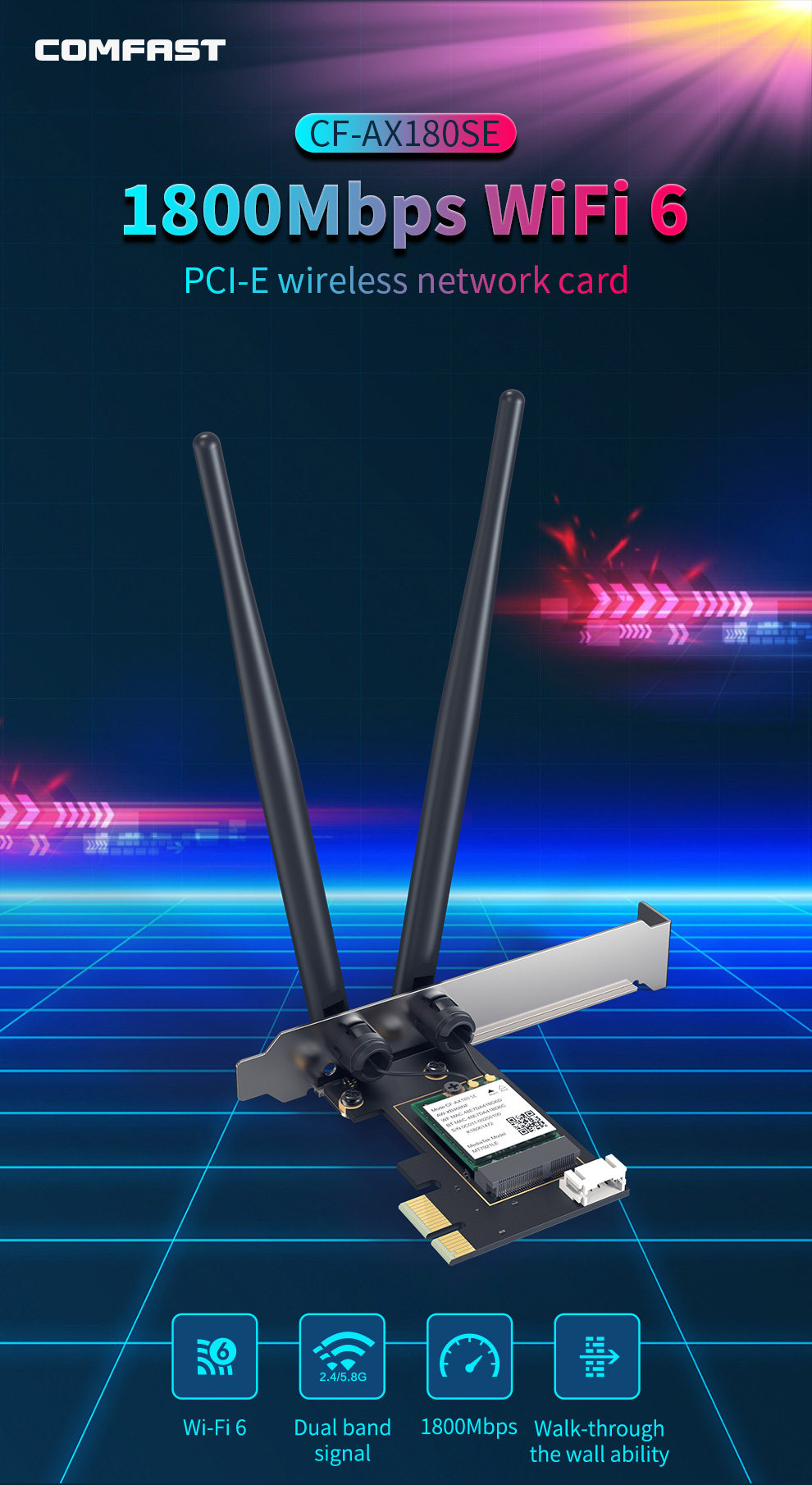 CF-AX180 SE is a high-speed PCI-E network card supporting WiFi6 (802.11ax) with dual-band 2.4GHz & 5.8GHz at 1800Mbps. Its external antennas enhance wall-penetration performance, delivering excellent connectivity for demanding users.