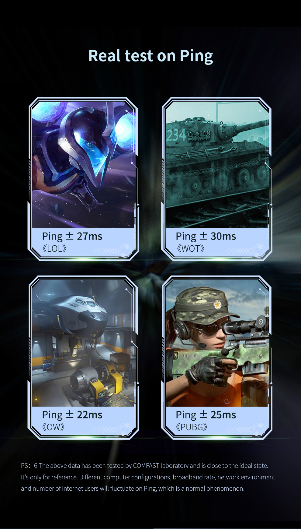 *The data on this page are theoretical values obtained from COMFAST’s internal laboratory under specific testing conditions. Actual usage may vary due to individual product differences, software versions, usage conditions, and environmental factors. Please refer to real-world usage for accurate representation.