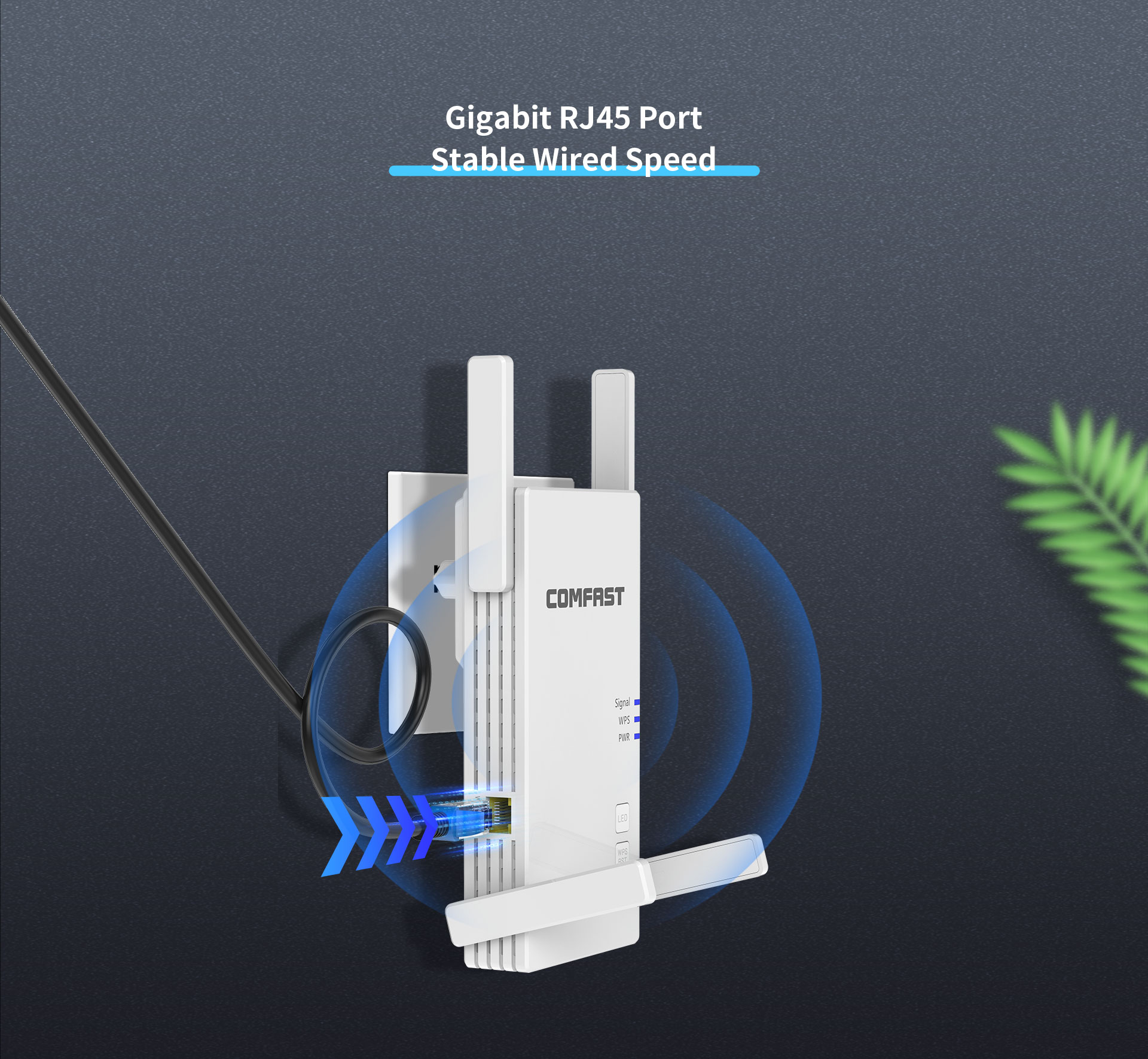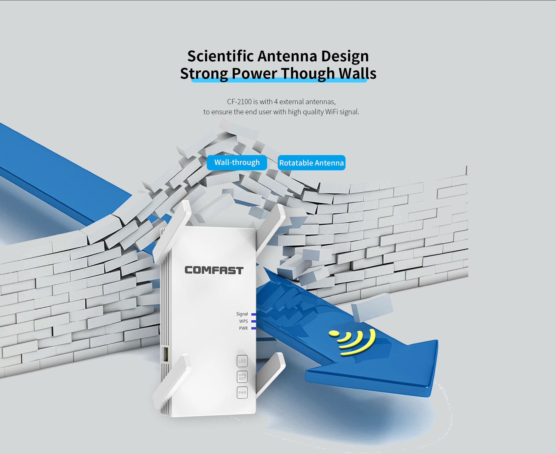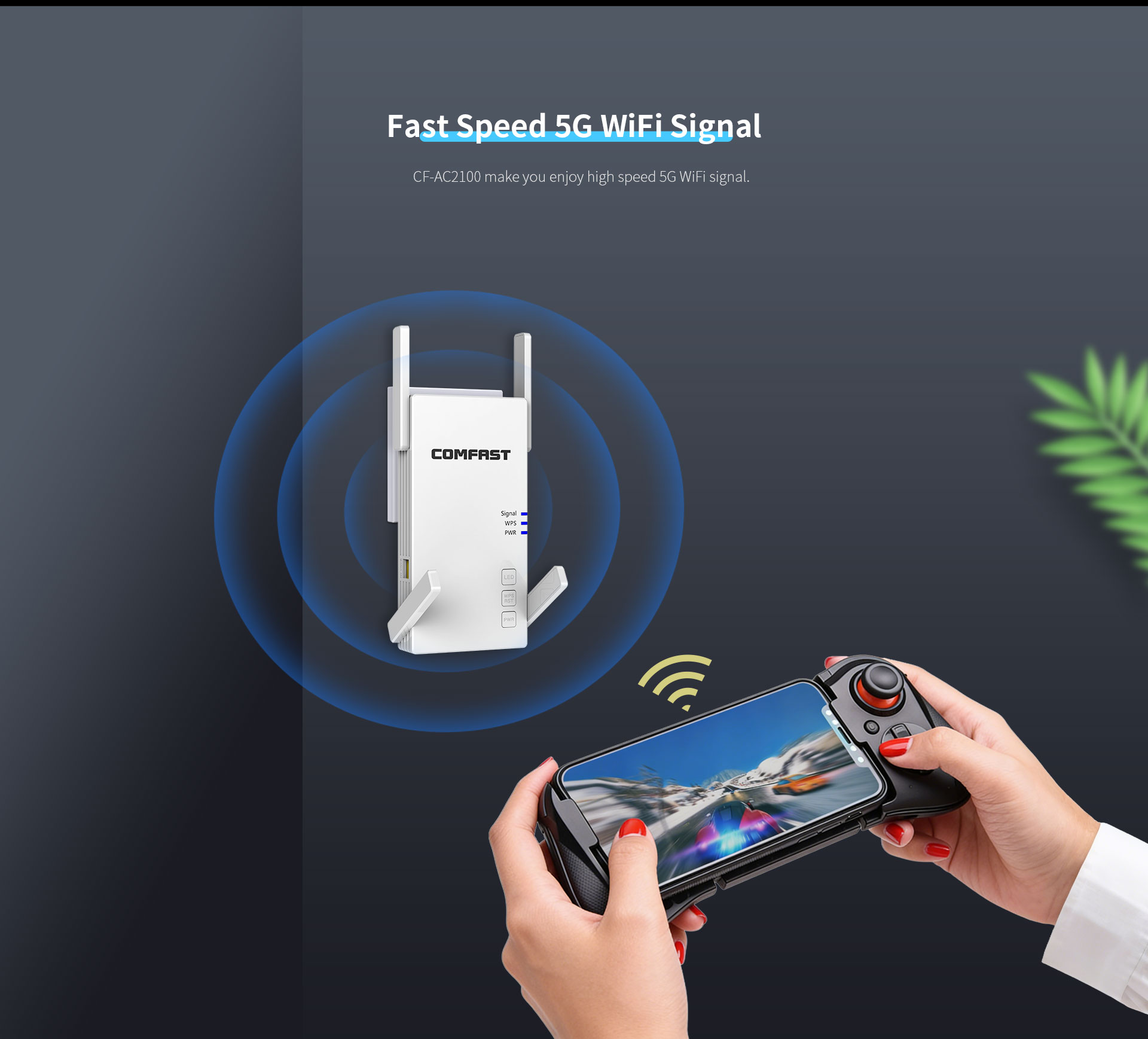 The CF-AC2100 is a high-performance 2100Mbps dual-band WiFi signal booster, designed to meet premium networking demands in large, multi-story, and complex home layouts. It extends 5G WiFi coverage via a powerful quad-antenna system and features a Gigabit port for stable wired expansion, effortlessly eliminating dead zones for lag-free streaming, gaming, and HD video.