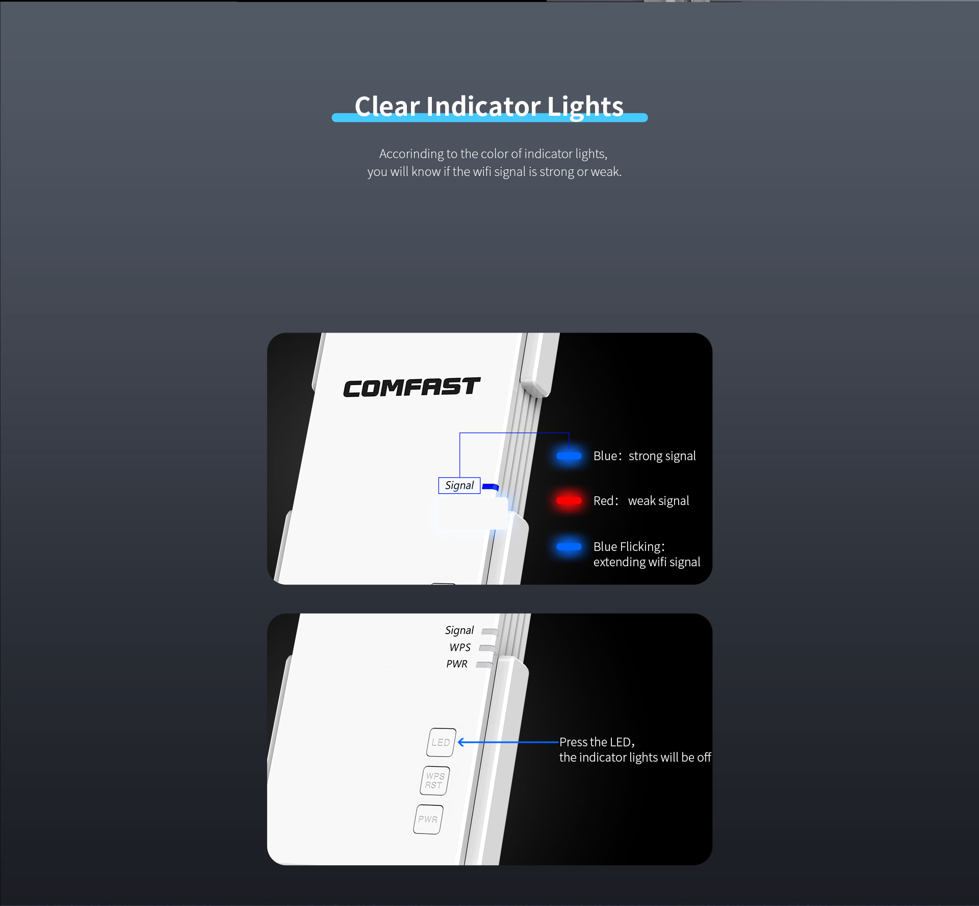 *Con el fin de proporcionar información, especificaciones y características del producto lo más precisas posible, COMFAST puede ajustar y revisar periódicamente las descripciones de texto, efectos de imagen y otros contenidos de esta página para garantizar la alineación con el rendimiento, las especificaciones, el embalaje y los accesorios reales del producto. En caso de que dichos ajustes o revisiones fueran necesarios, no se proporcionará ningún aviso previo.