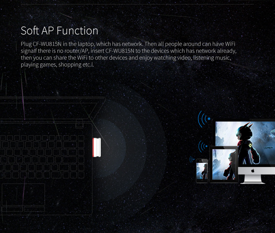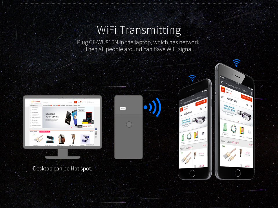 Plug CF-WU815N in the laptop, which has network. Then all people around can have WiFi signal.