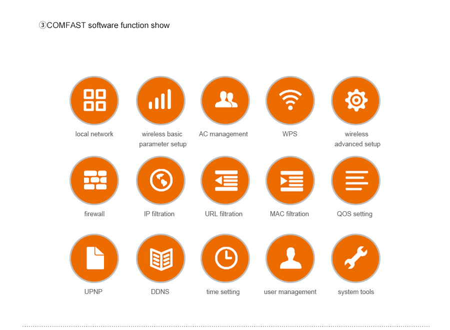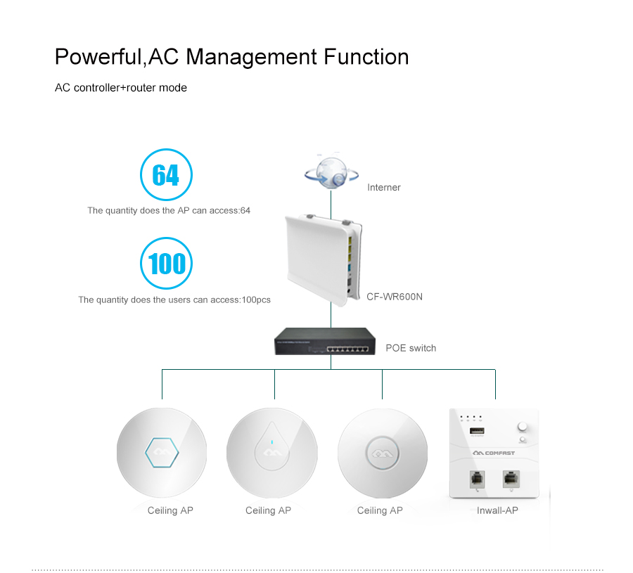 *The product images and demonstration scenarios on this page are for illustrative purposes only and may have slight differences from the actual product. Please refer to the physical product for accuracy. *The data on this page are theoretical values obtained from COMFAST’s internal laboratory under specific testing conditions. Actual usage may vary due to individual product differences, software versions, usage conditions, and environmental factors. Please refer to real-world usage for accurate representation. *To provide as accurate product information, specifications, and features as possible, COMFAST may periodically adjust and revise the text descriptions, image effects, and other content on this page to ensure alignment with actual product performance, specifications, packaging, and accessories. Should such adjustments or revisions become necessary, no prior notice will be provided.