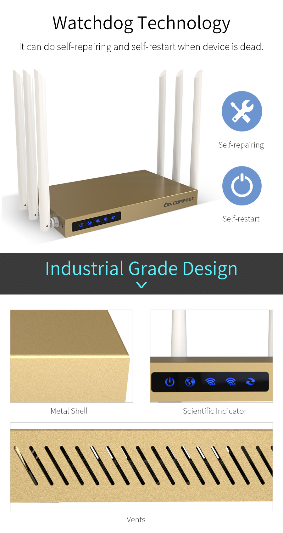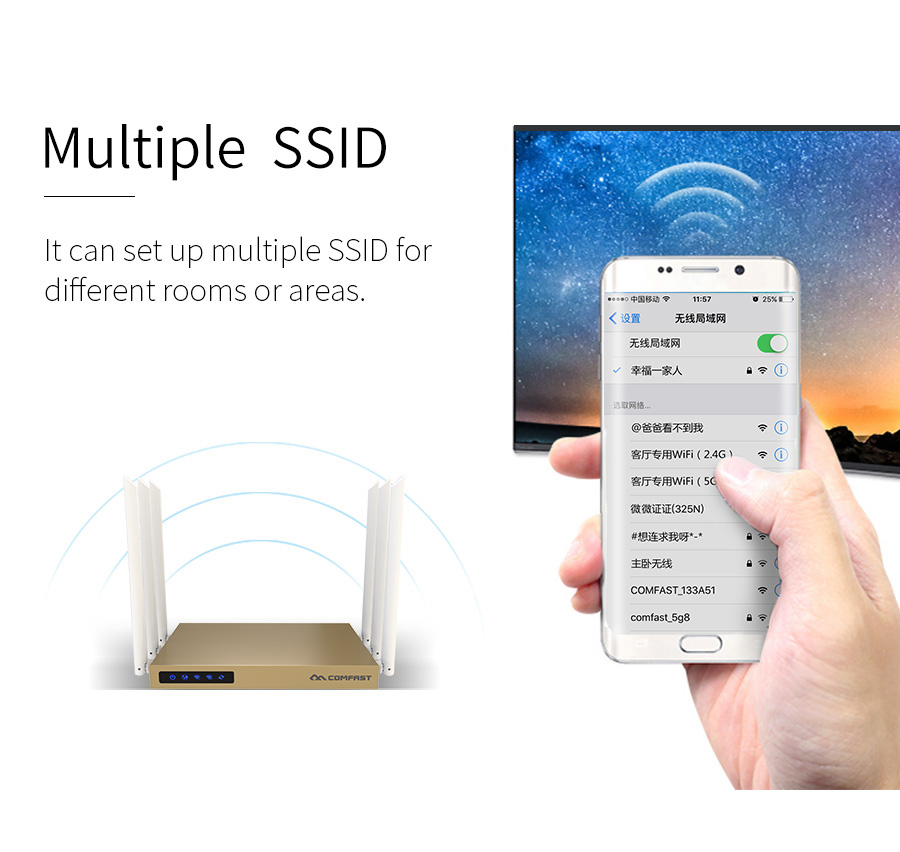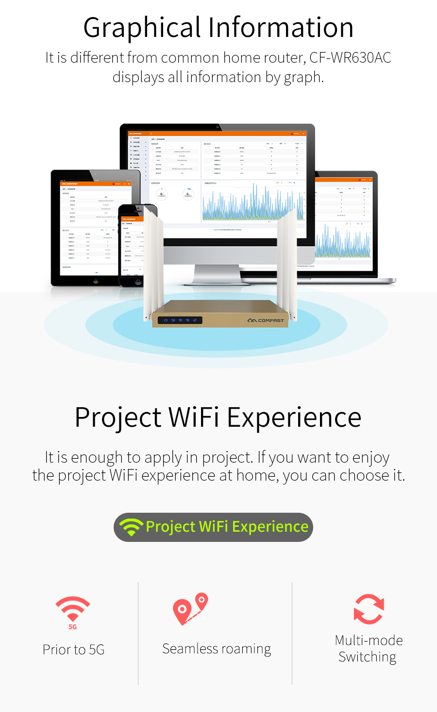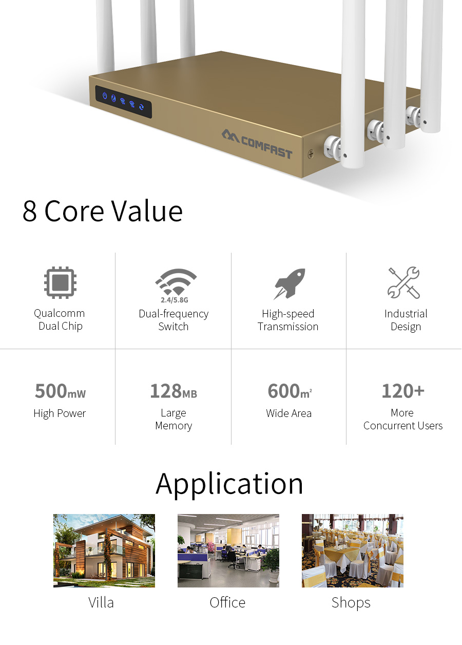*The product images and demonstration scenarios on this page are for illustrative purposes only and may have slight differences from the actual product. Please refer to the physical product for accuracy. *The data on this page are theoretical values obtained from COMFAST’s internal laboratory under specific testing conditions. Actual usage may vary due to individual product differences, software versions, usage conditions, and environmental factors. Please refer to real-world usage for accurate representation. *To provide as accurate product information, specifications, and features as possible, COMFAST may periodically adjust and revise the text descriptions, image effects, and other content on this page to ensure alignment with actual product performance, specifications, packaging, and accessories. Should such adjustments or revisions become necessary, no prior notice will be provided.
