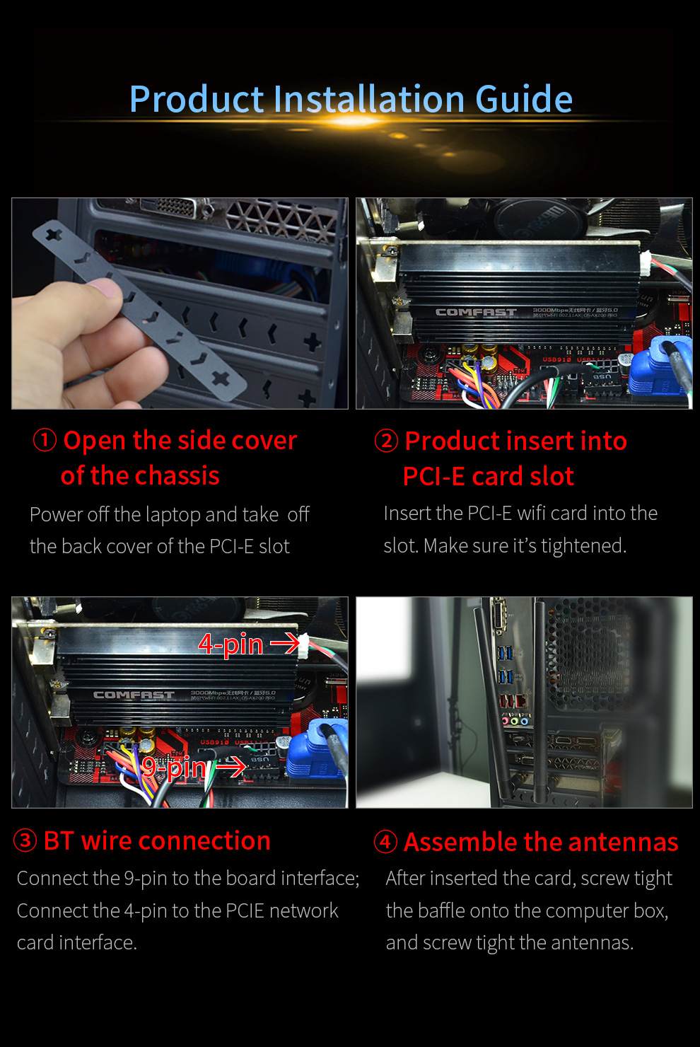 • Anti-oxidation gold fingers ensure sensitive signal transmission