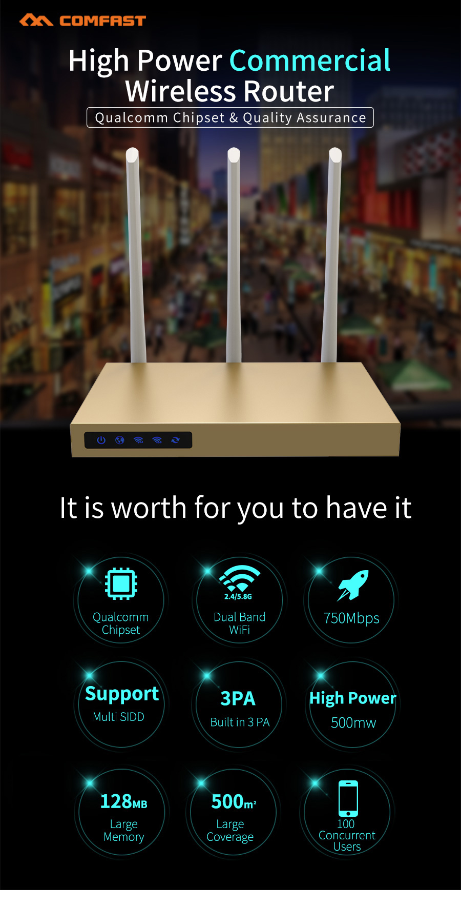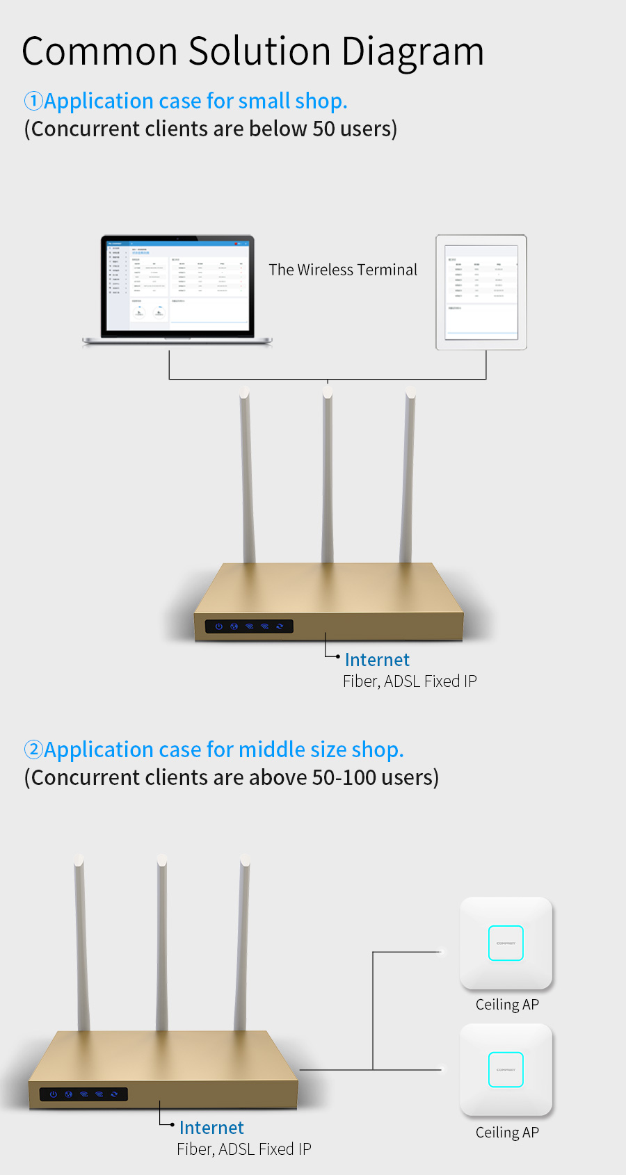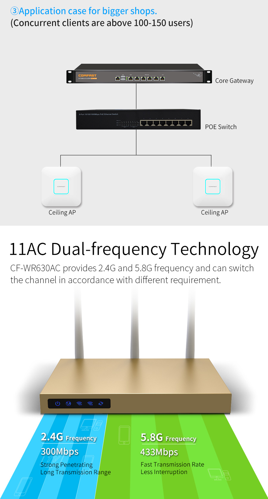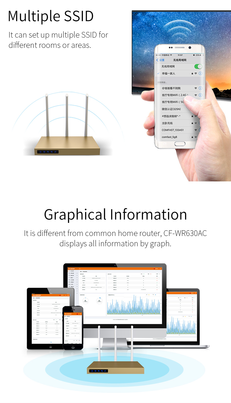 *The product images and demonstration scenarios on this page are for illustrative purposes only and may have slight differences from the actual product. Please refer to the physical product for accuracy.*The data on this page are theoretical values obtained from COMFAST’s internal laboratory under specific testing conditions. Actual usage may vary due to individual product differences, software versions, usage conditions, and environmental factors. Please refer to real-world usage for accurate representation.*To provide as accurate product information, specifications, and features as possible, COMFAST may periodically adjust and revise the text descriptions, image effects, and other content on this page to ensure alignment with actual product performance, specifications, packaging, and accessories. Should such adjustments or revisions become necessary, no prior notice will be provided.