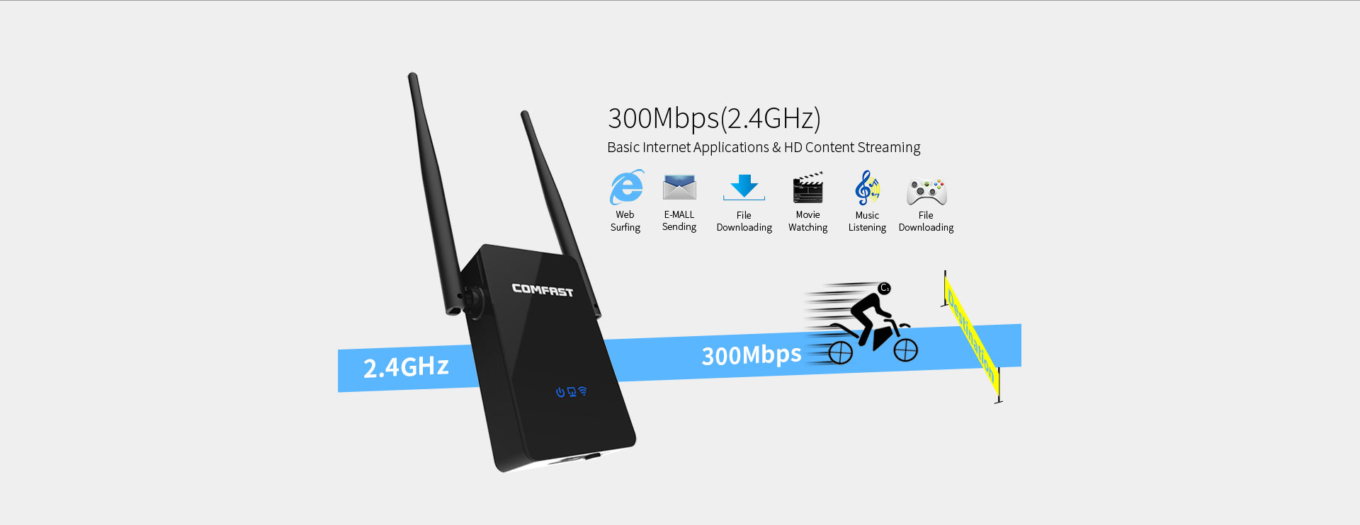 The CF-WR302S is a 300Mbps wireless range extender featuring a refined finish and energy-efficient design. Its dual external high-gain antennas boost signal coverage and wall penetration. With WPS one-touch pairing and multiple modes (repeater, AP, router), it effortlessly extends WiFi in home or office settings, eliminating dead zones for reliable connectivity.