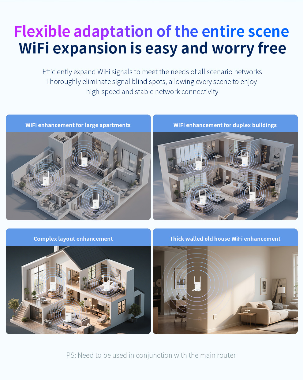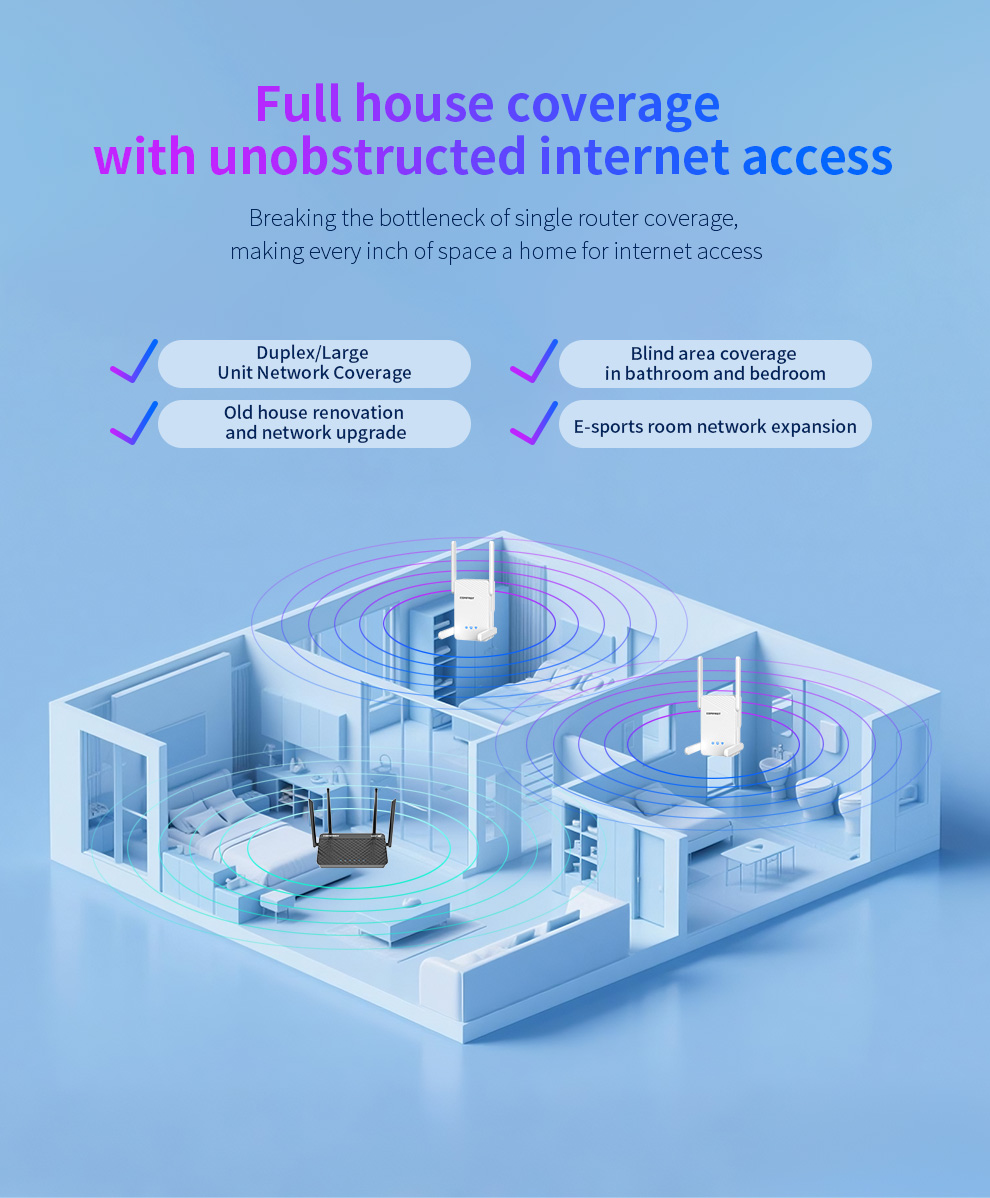 Efficiently expand WiFi signals to meet the needs of all scenario networks Thoroughly eliminate signal blind spots,