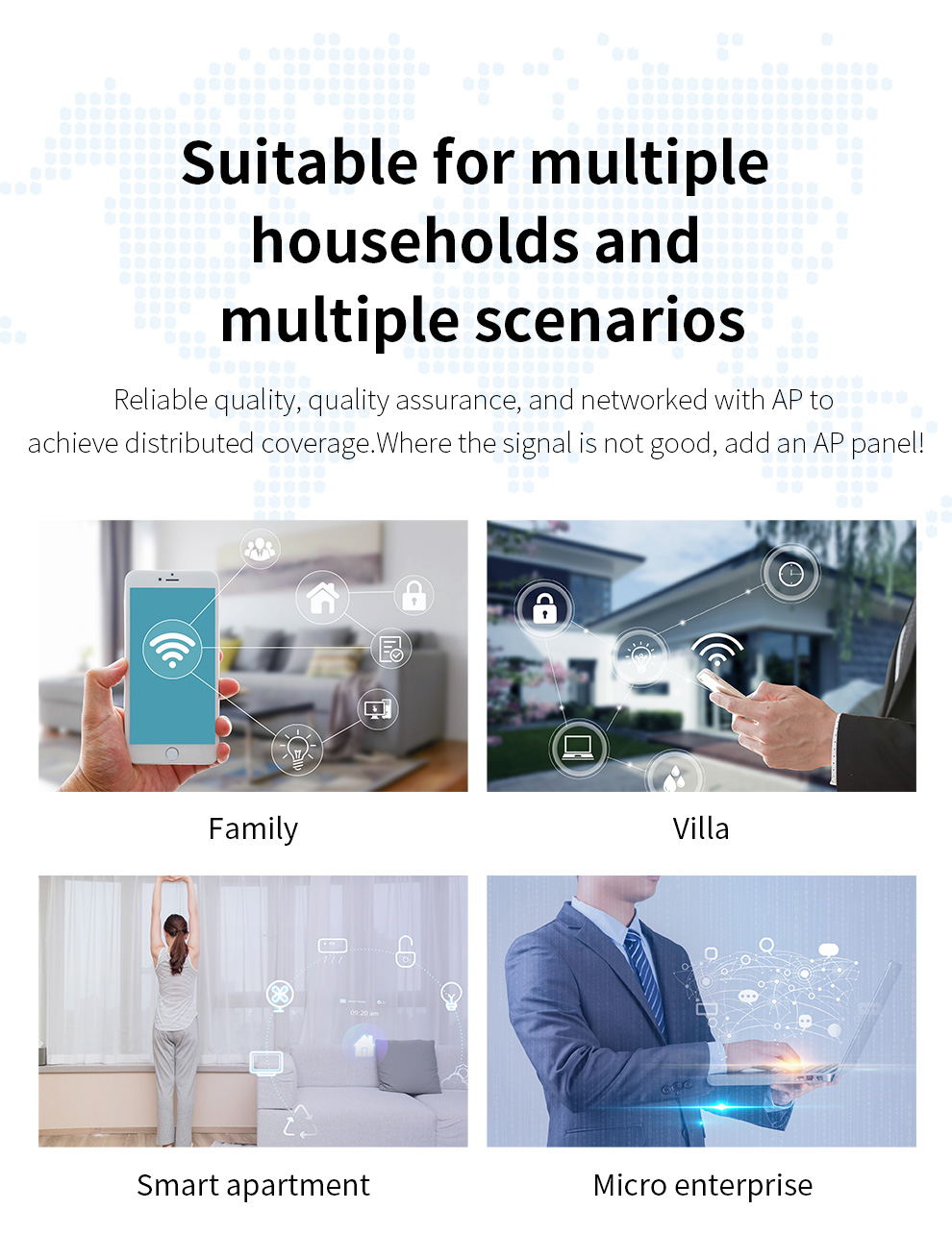 Networking for large flat floors, lofts, villas, etc. Due to the complex building structure