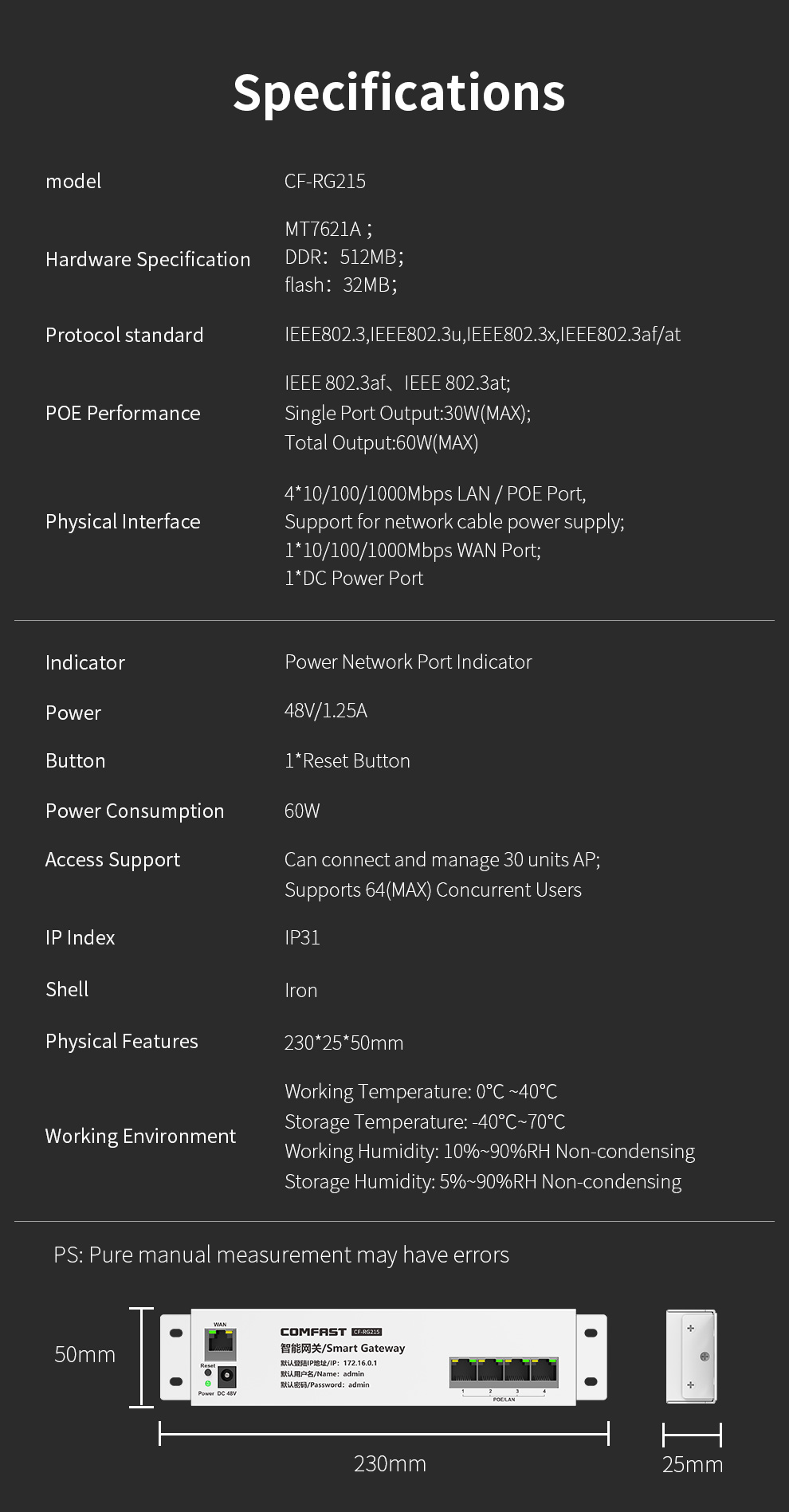 CF-RG215 integrates POE power supply, AC management, and router