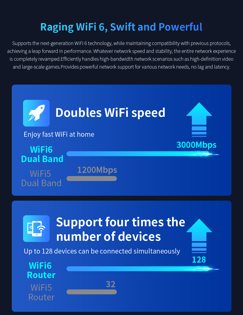 As a new generation of Wi-Fi standard, Wi-Fi 6 has faster speeds, lower latency,