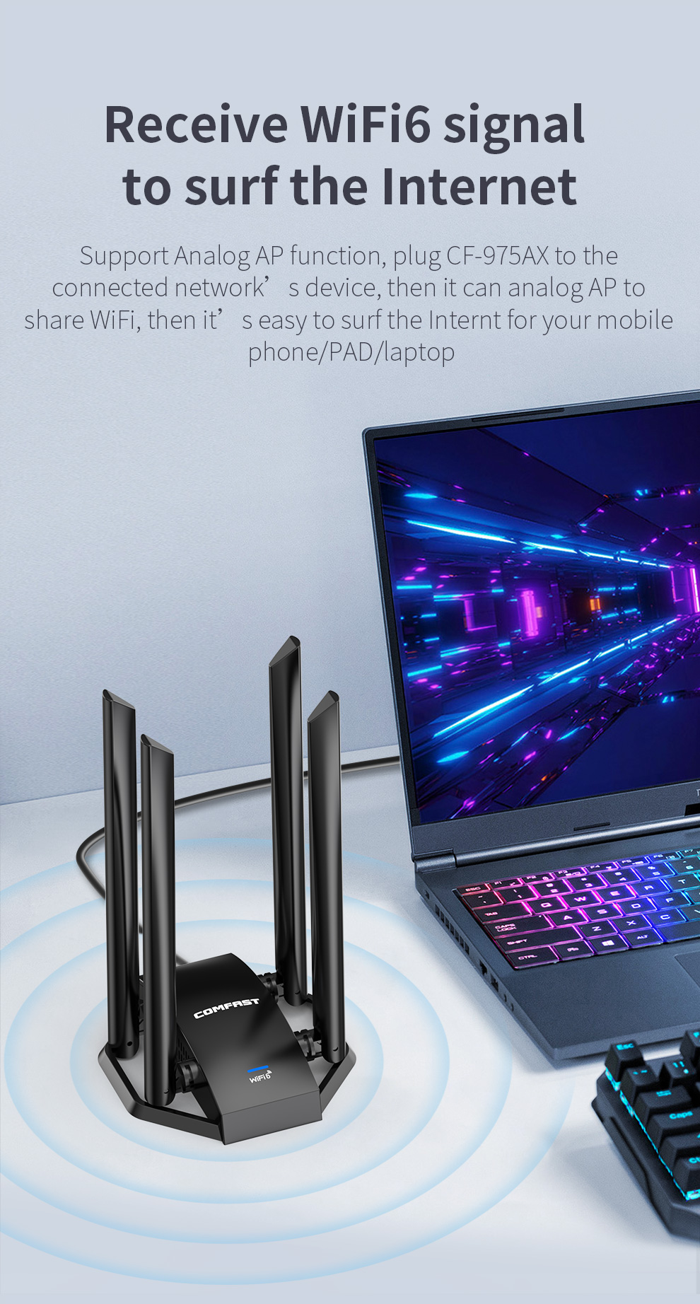 It can enable the desktop and laptop to receive the WIFI signal, surpassing the original in stability and capacity.