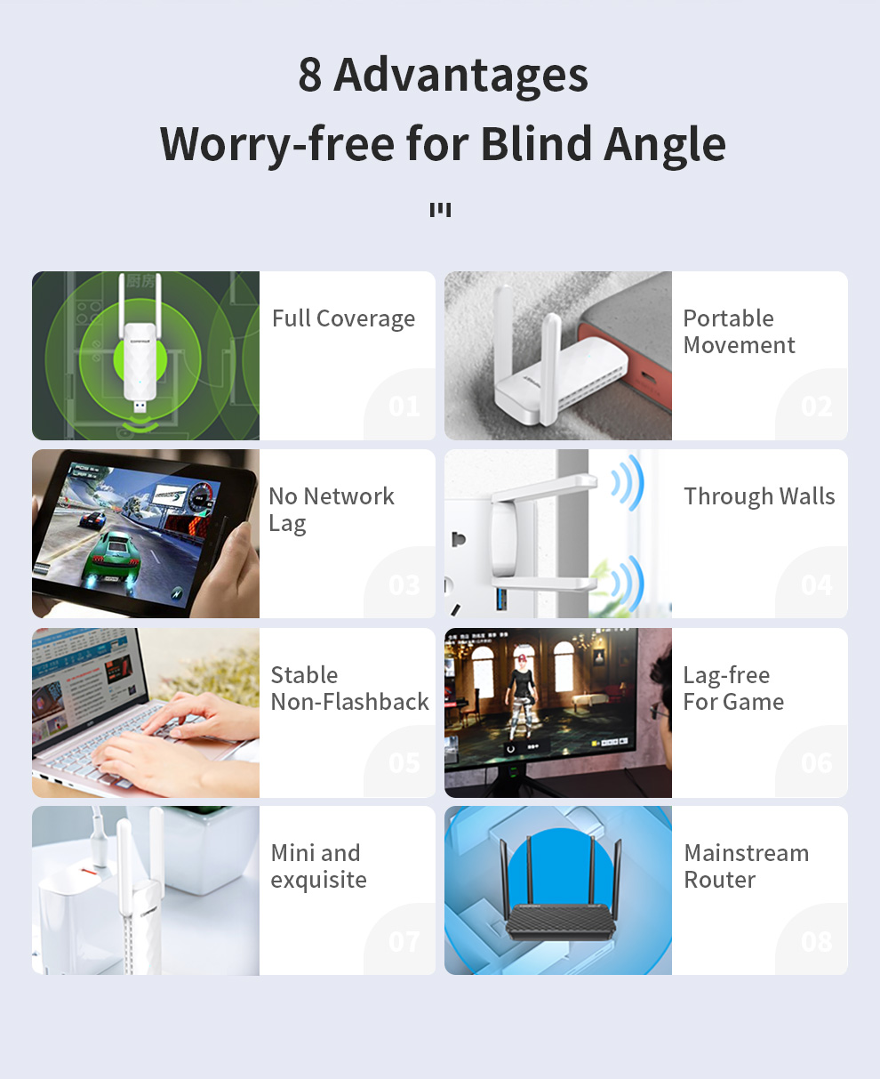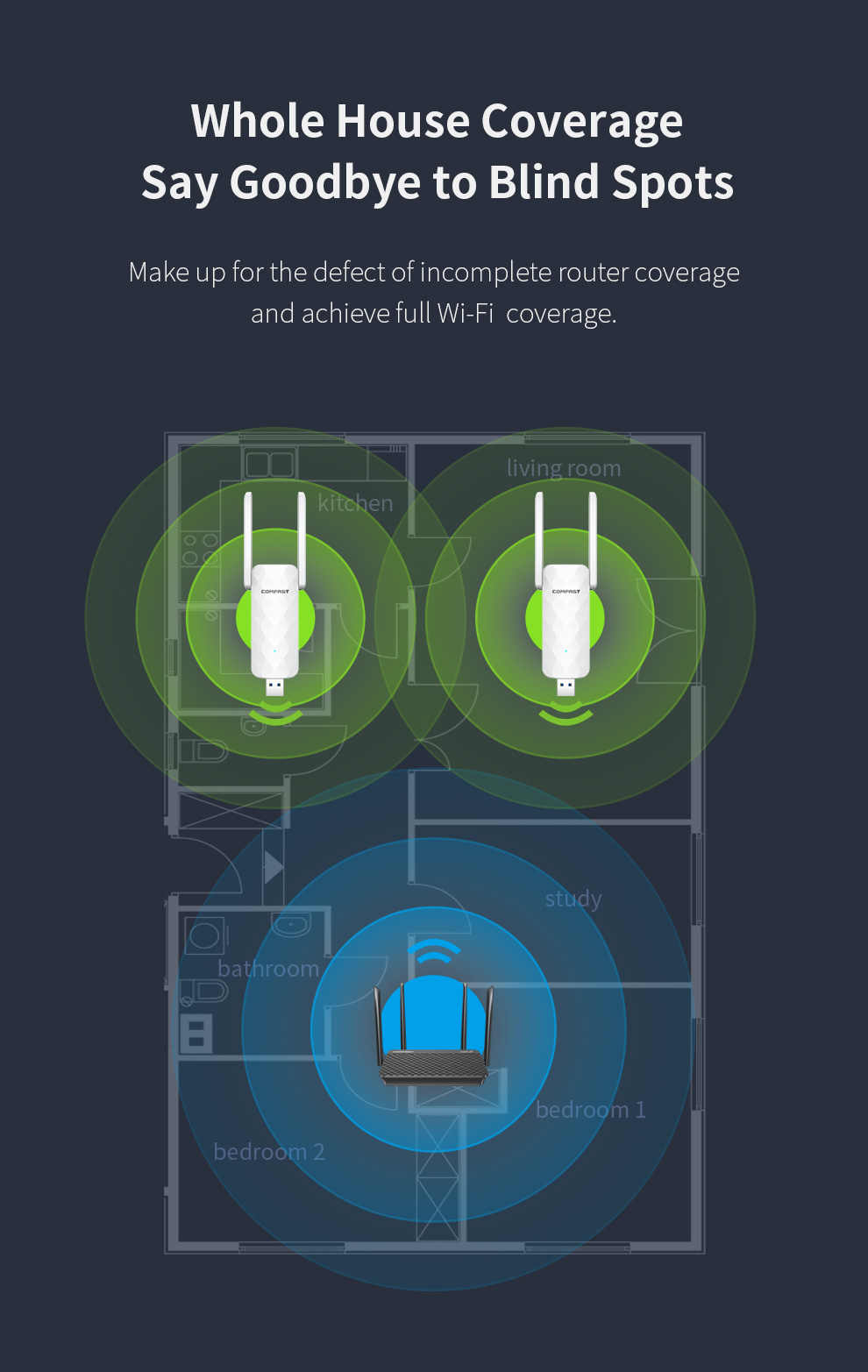 Eliminate Dead Zones: Extends Wi-Fi coverage to every corner.