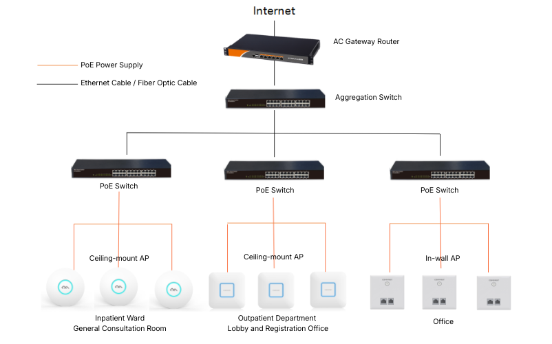 1. On-Site Survey and Precise Planning: Through field surveys of each hospital floor, combined with factors like personnel density, service attributes, and building structure in different areas, a network topology was scientifically designed, leading to differentiated equipment selection and placement strategies.