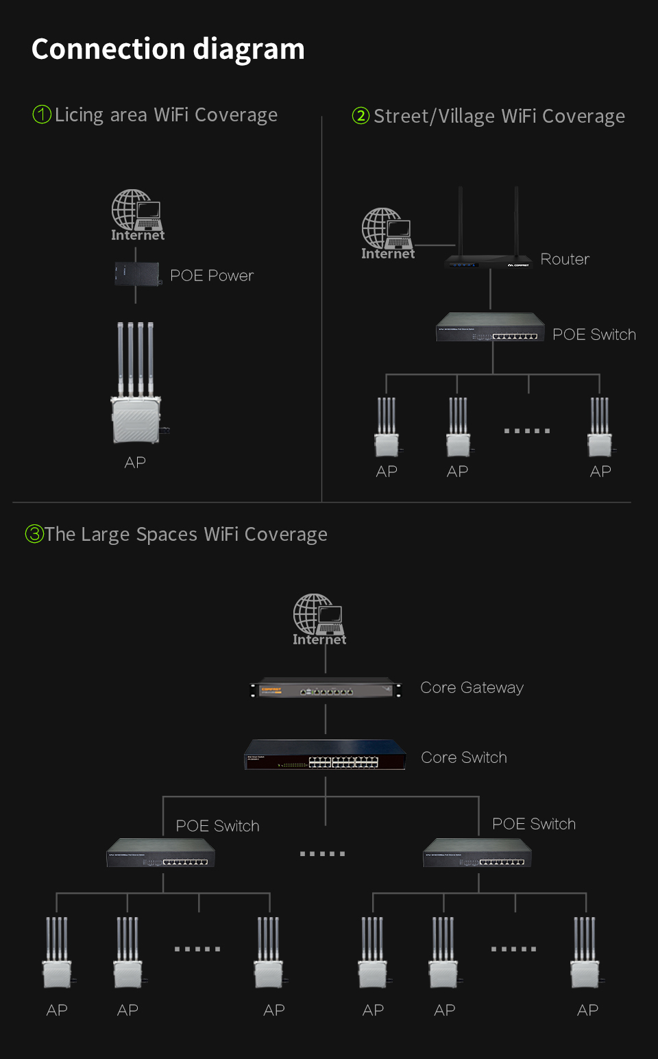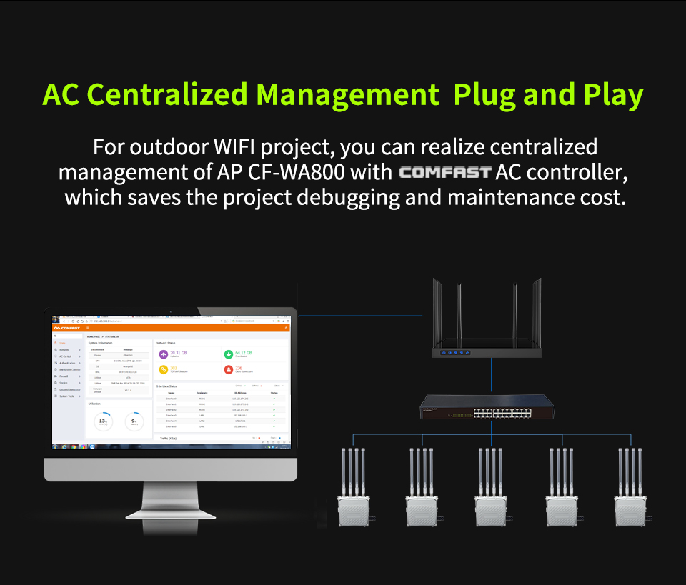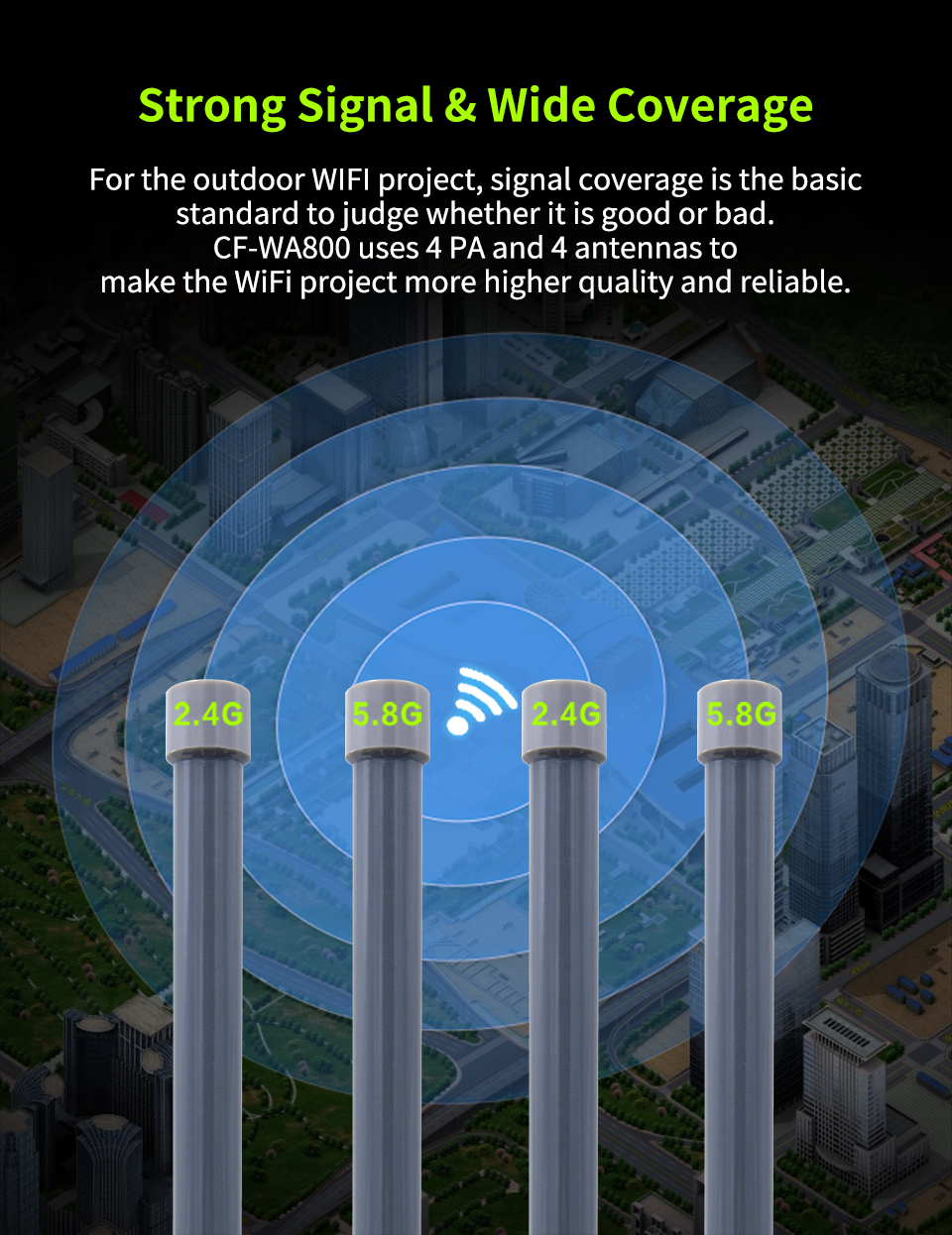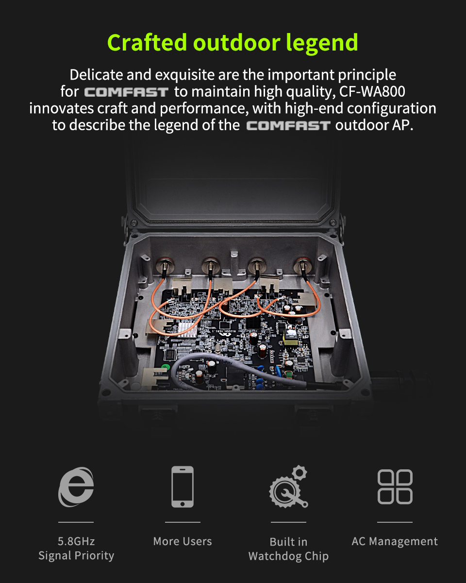 *The product images and demonstration scenarios on this page are for illustrative purposes only and may have slight differences from the actual product. Please refer to the physical product for accuracy. *The data on this page are theoretical values obtained from COMFAST’s internal laboratory under specific testing conditions. Actual usage may vary due to individual product differences, software versions, usage conditions, and environmental factors. Please refer to real-world usage for accurate representation. *To provide as accurate product information, specifications, and features as possible, COMFAST may periodically adjust and revise the text descriptions, image effects, and other content on this page to ensure alignment with actual product performance, specifications, packaging, and accessories. Should such adjustments or revisions become necessary, no prior notice will be provided.