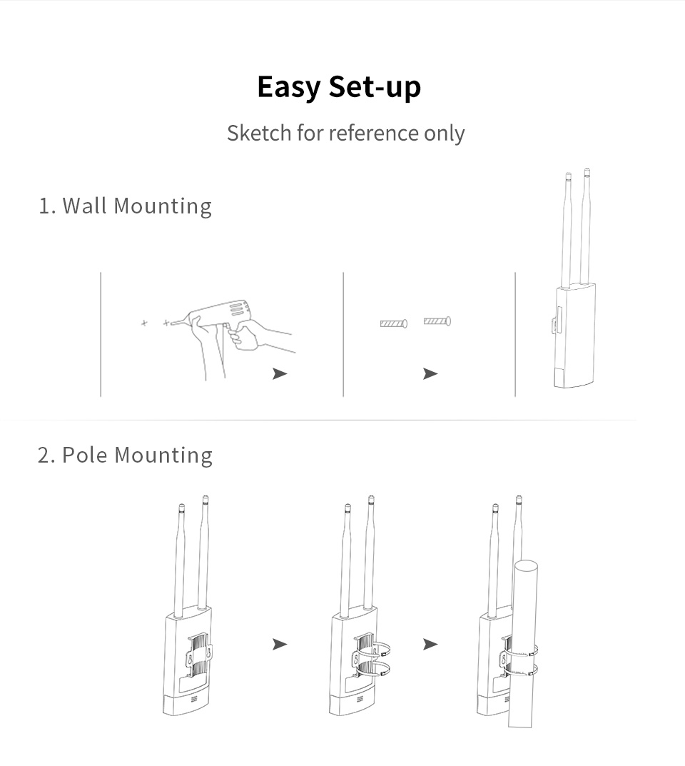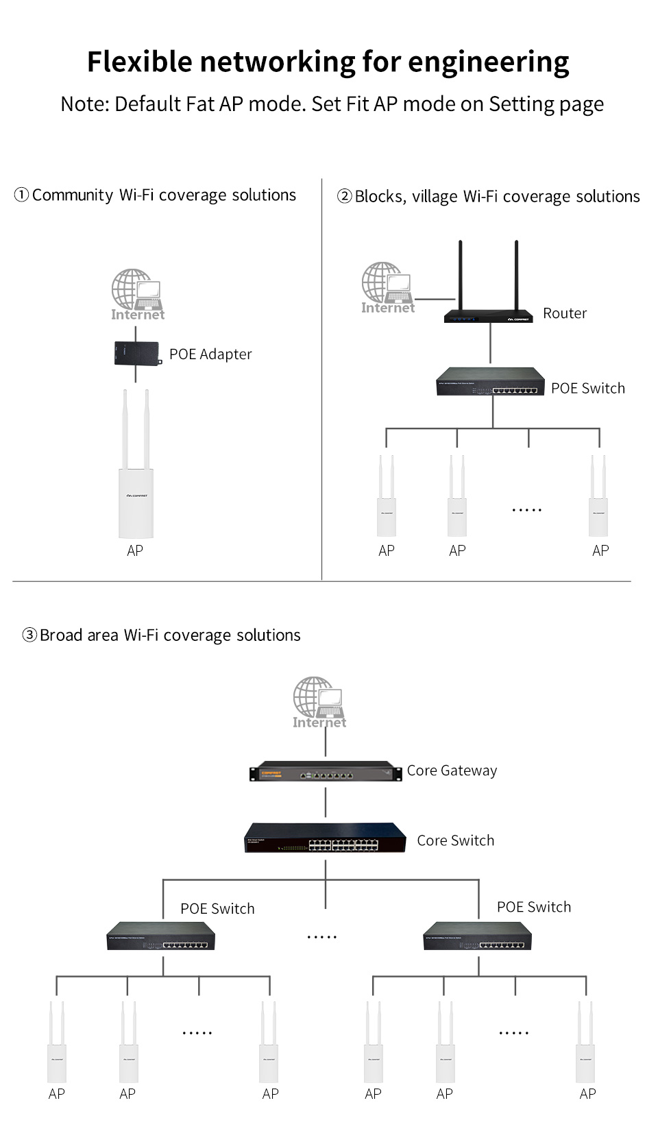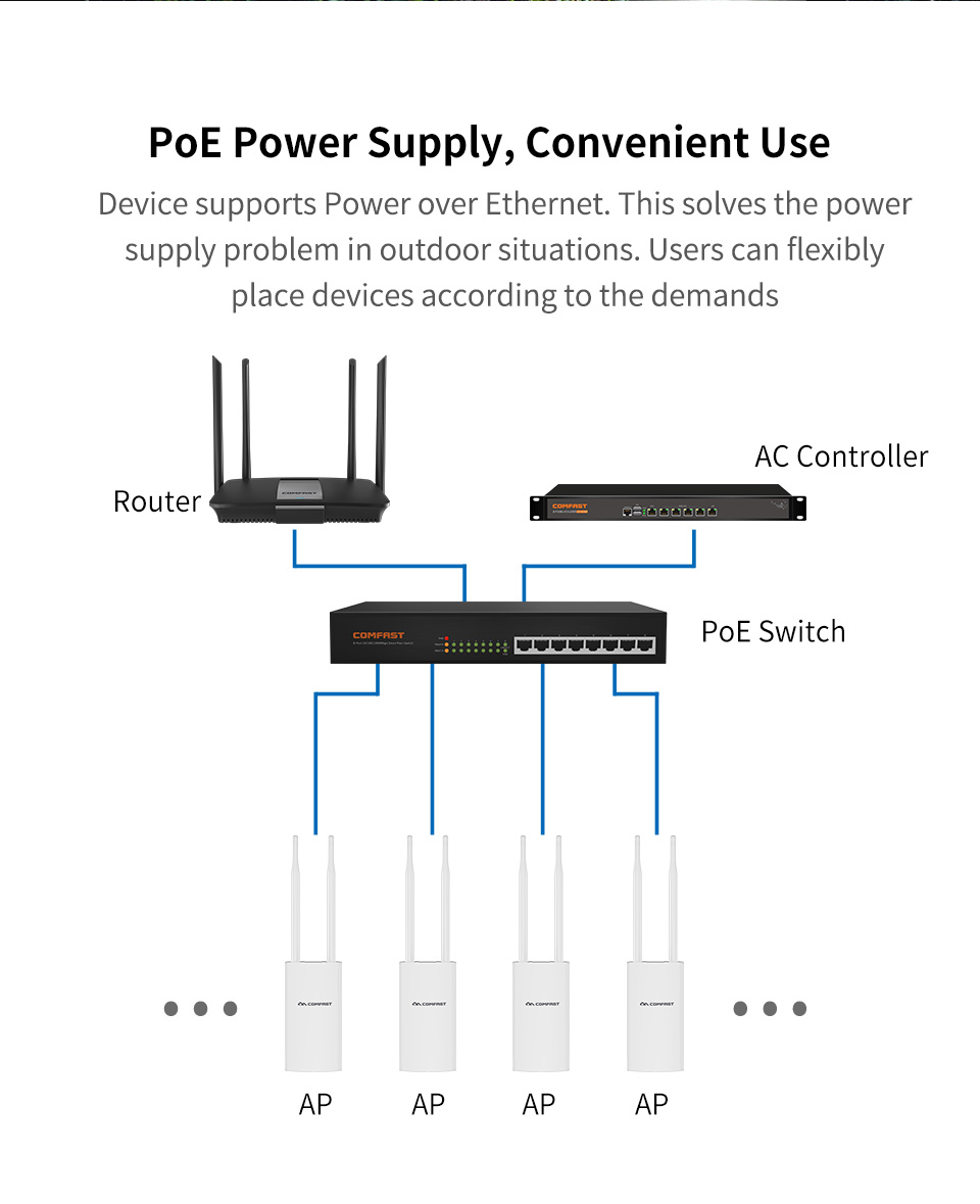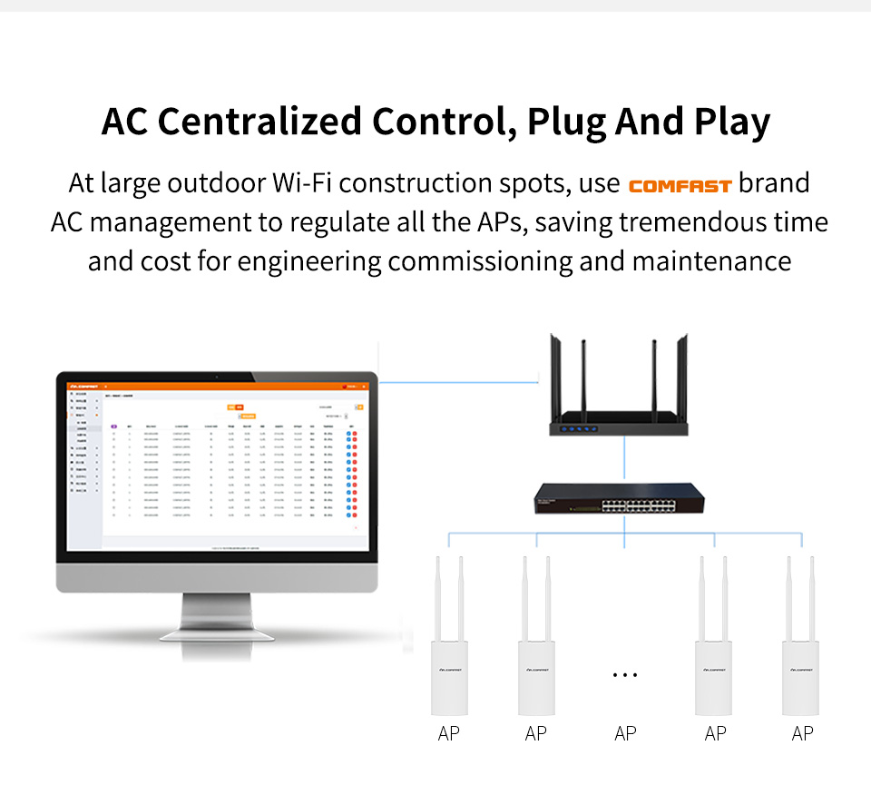 *The product images and demonstration scenarios on this page are for illustrative purposes only and may have slight differences from the actual product. Please refer to the physical product for accuracy. *The data on this page are theoretical values obtained from COMFAST’s internal laboratory under specific testing conditions. Actual usage may vary due to individual product differences, software versions, usage conditions, and environmental factors. Please refer to real-world usage for accurate representation. *To provide as accurate product information, specifications, and features as possible, COMFAST may periodically adjust and revise the text descriptions, image effects, and other content on this page to ensure alignment with actual product performance, specifications, packaging, and accessories. Should such adjustments or revisions become necessary, no prior notice will be provided.