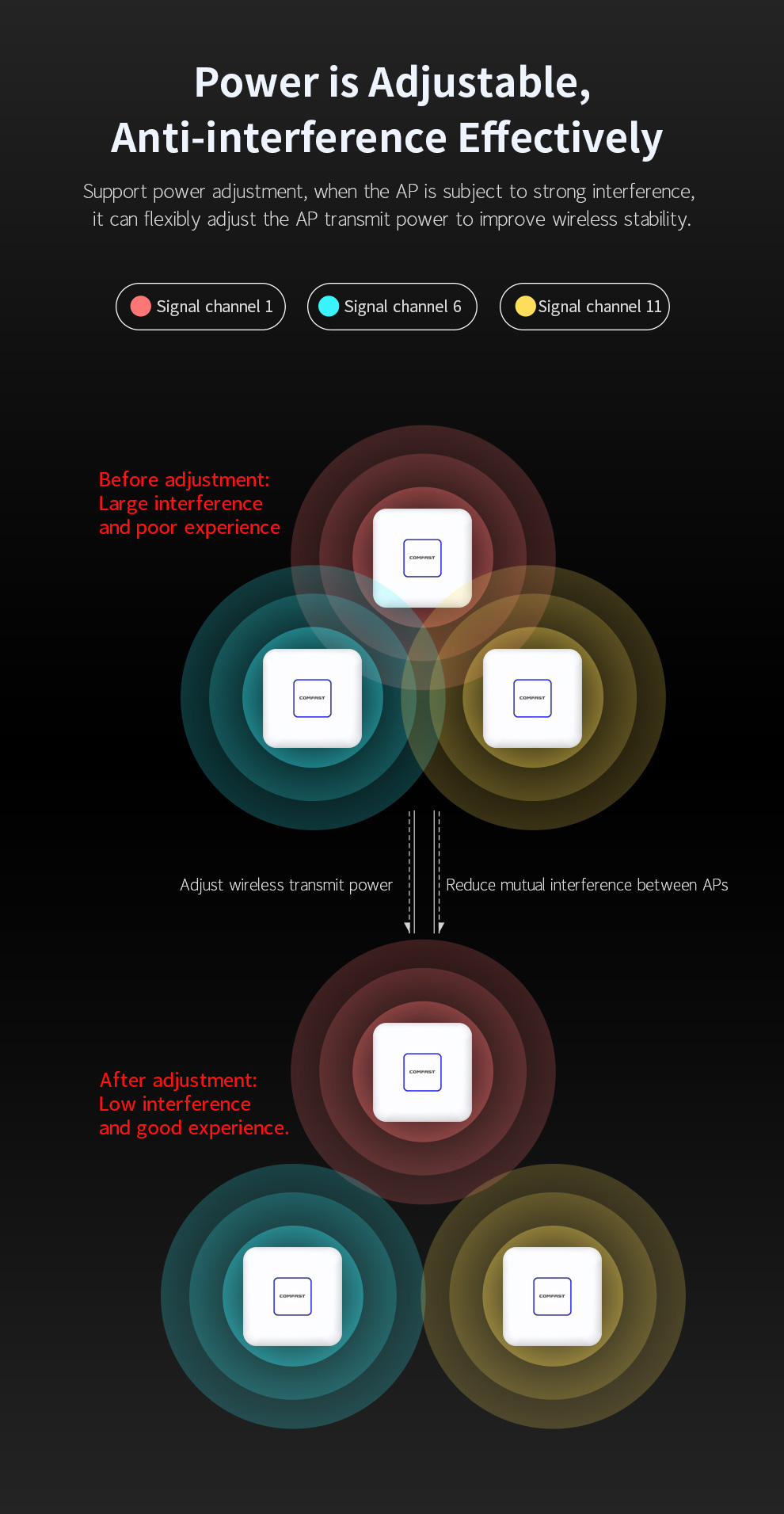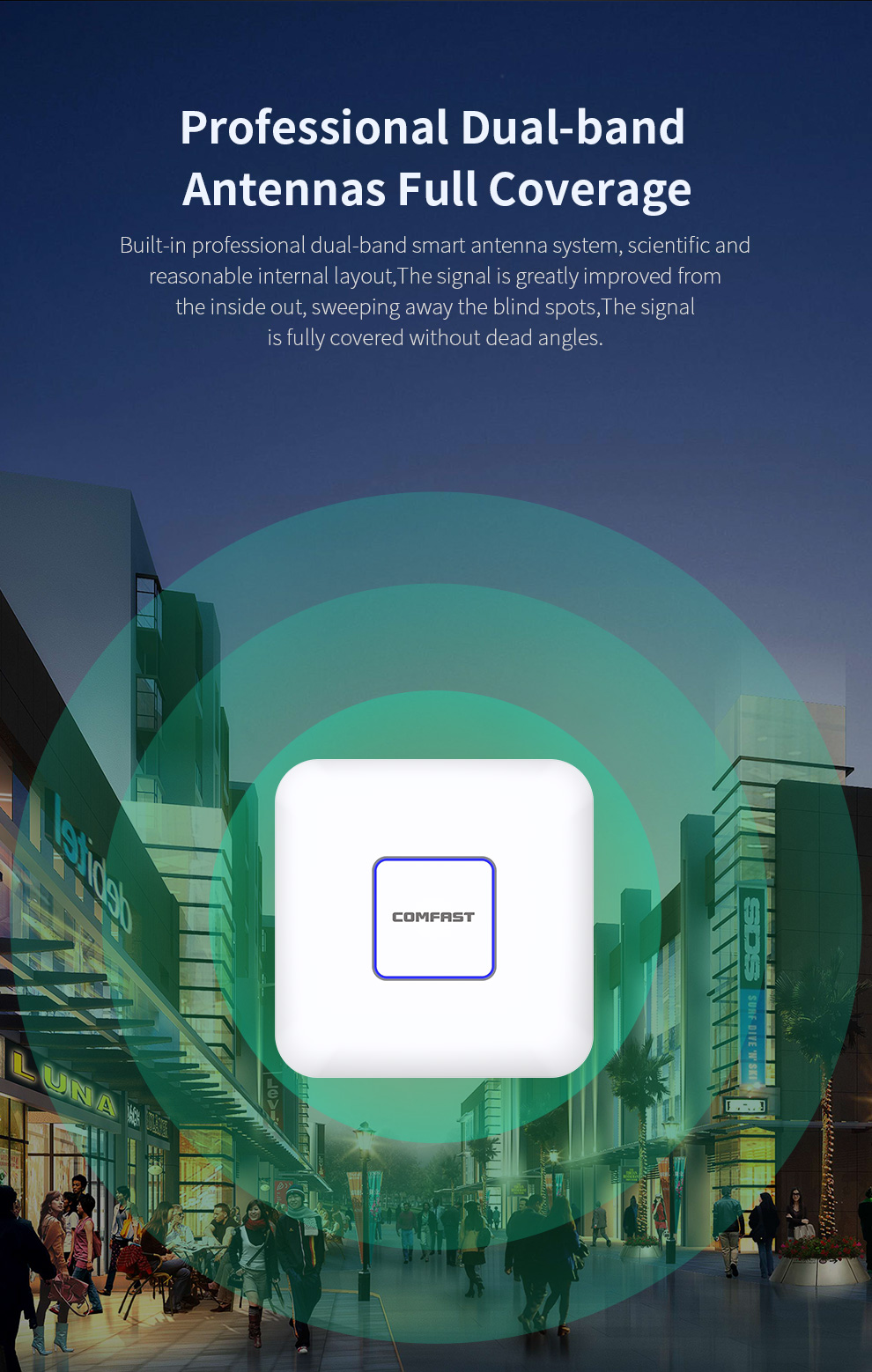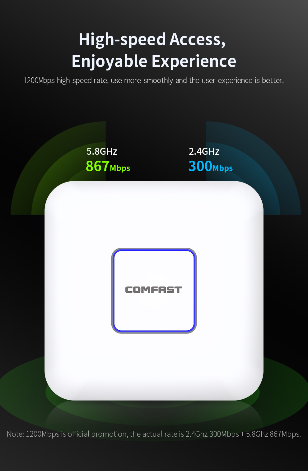 *The product images and demonstration scenarios on this page are for illustrative purposes only and may have slight differences from the actual product. Please refer to the physical product for accuracy. *The data on this page are theoretical values obtained from COMFAST’s internal laboratory under specific testing conditions. Actual usage may vary due to individual product differences, software versions, usage conditions, and environmental factors. Please refer to real-world usage for accurate representation. *To provide as accurate product information, specifications, and features as possible, COMFAST may periodically adjust and revise the text descriptions, image effects, and other content on this page to ensure alignment with actual product performance, specifications, packaging, and accessories. Should such adjustments or revisions become necessary, no prior notice will be provided.