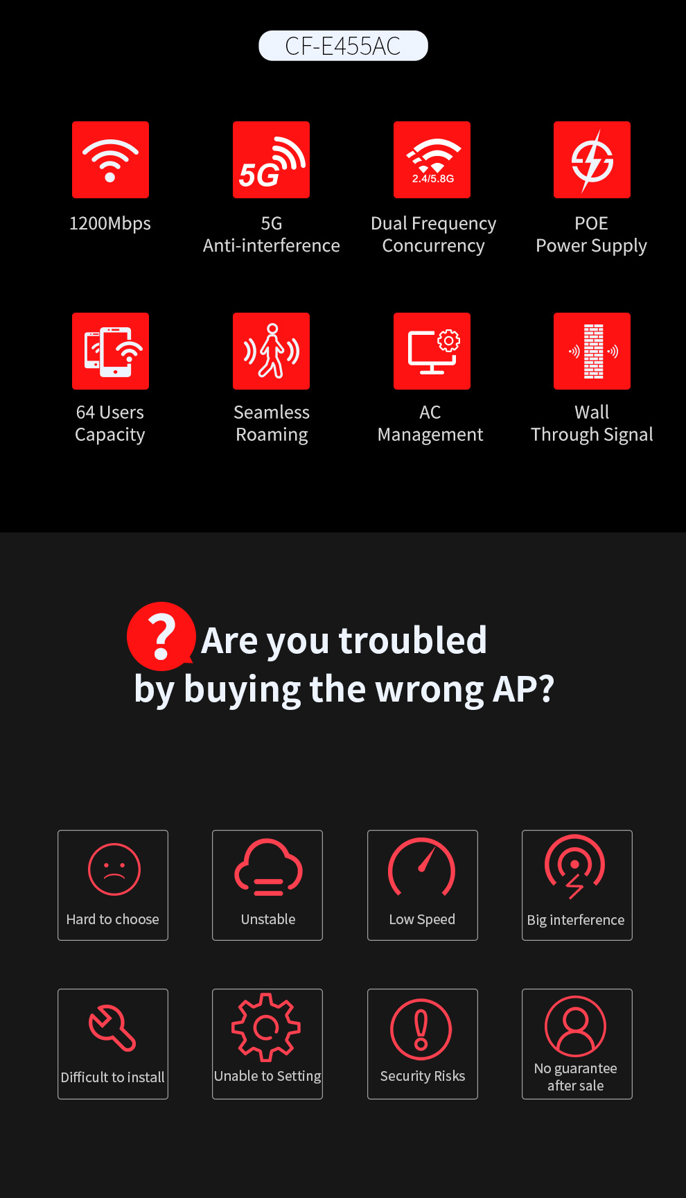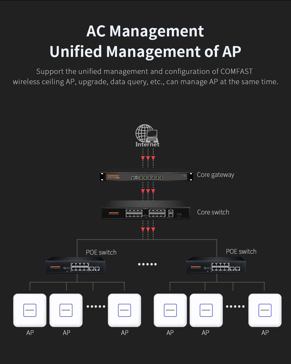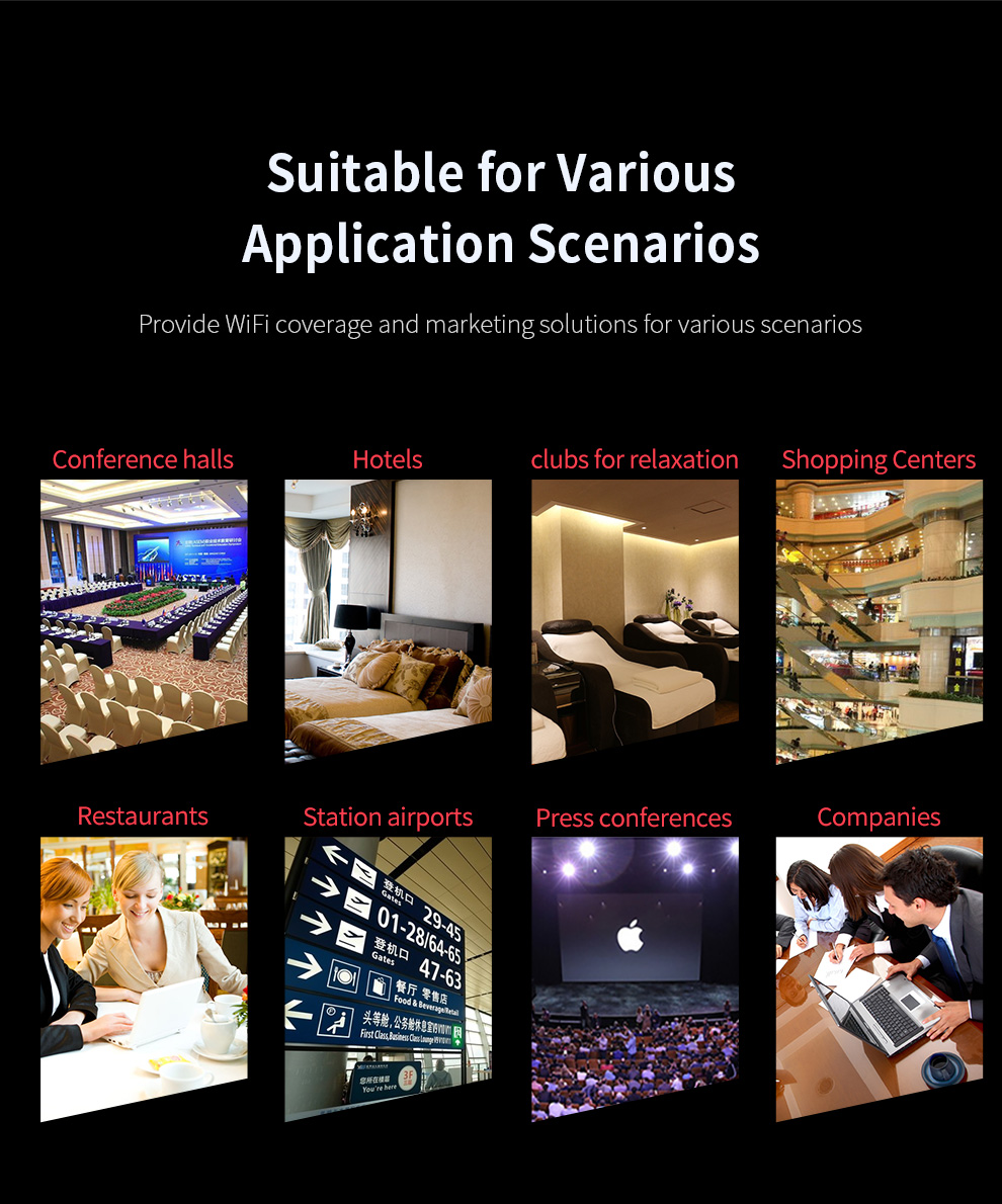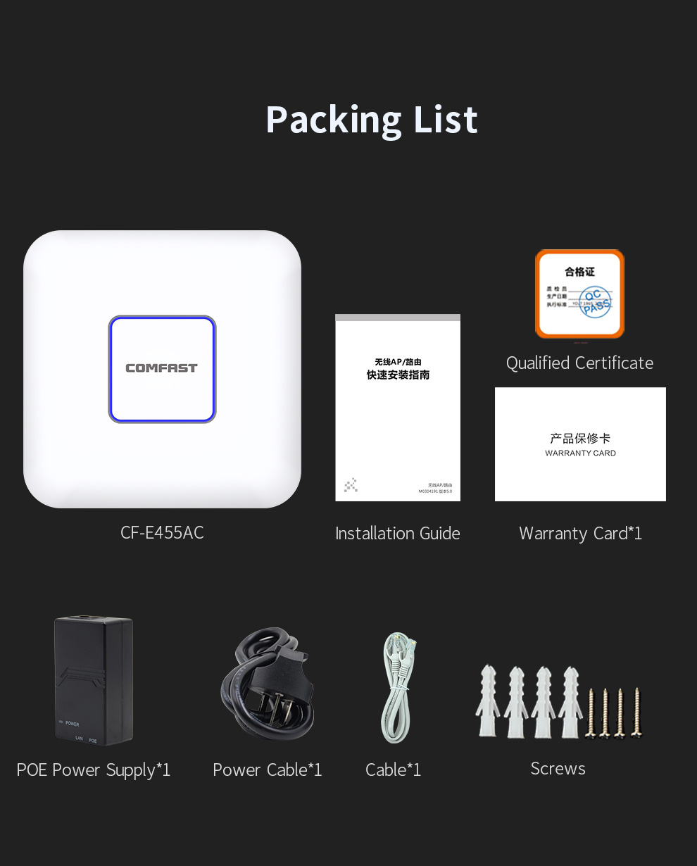 *The product images and demonstration scenarios on this page are for illustrative purposes only and may have slight differences from the actual product. Please refer to the physical product for accuracy. *The data on this page are theoretical values obtained from COMFAST’s internal laboratory under specific testing conditions. Actual usage may vary due to individual product differences, software versions, usage conditions, and environmental factors. Please refer to real-world usage for accurate representation. *To provide as accurate product information, specifications, and features as possible, COMFAST may periodically adjust and revise the text descriptions, image effects, and other content on this page to ensure alignment with actual product performance, specifications, packaging, and accessories. Should such adjustments or revisions become necessary, no prior notice will be provided.