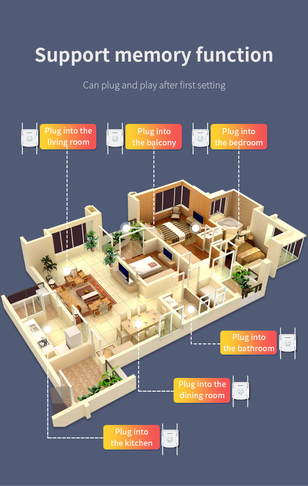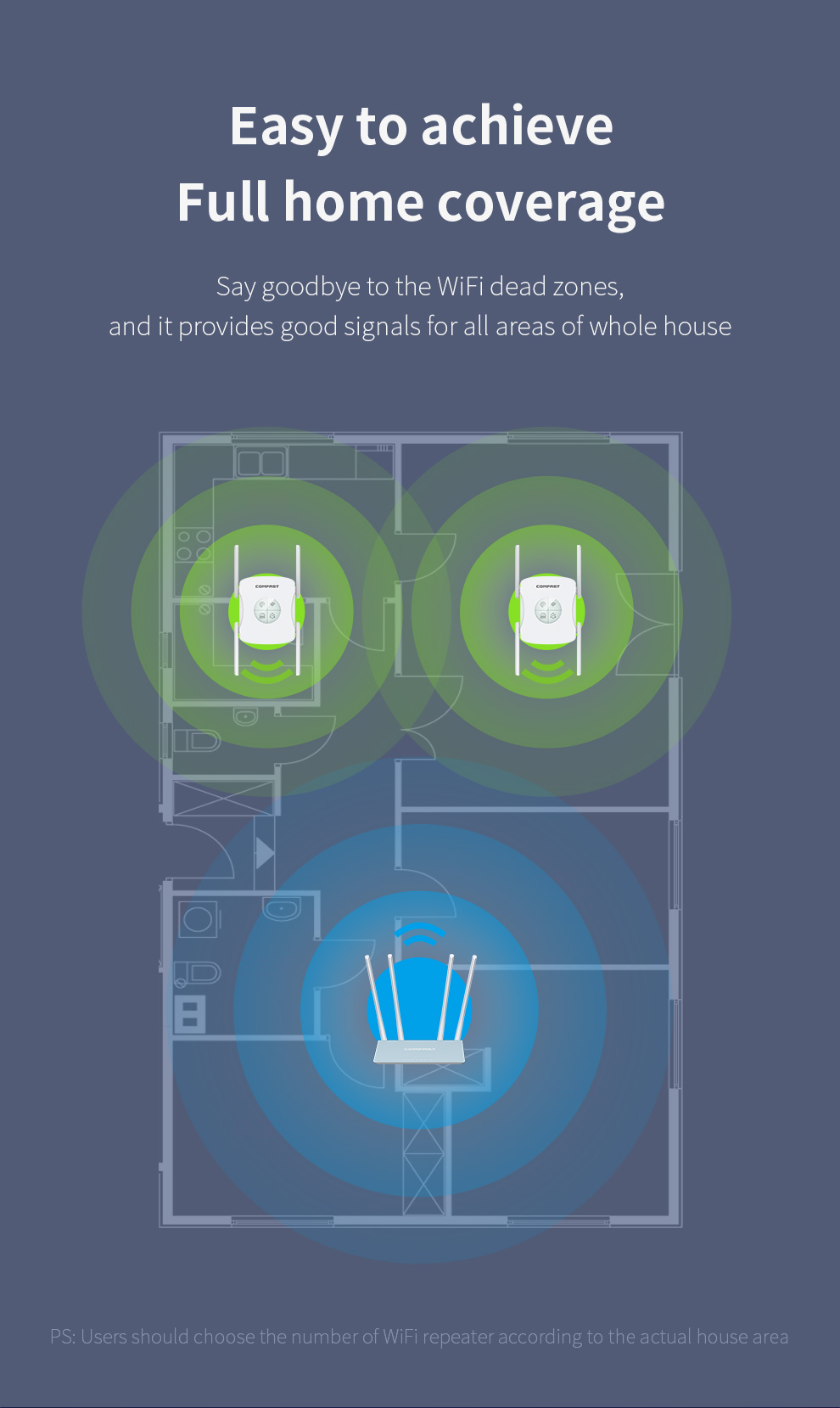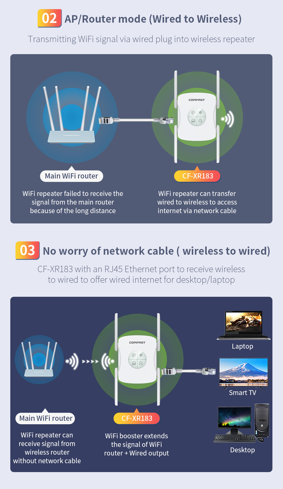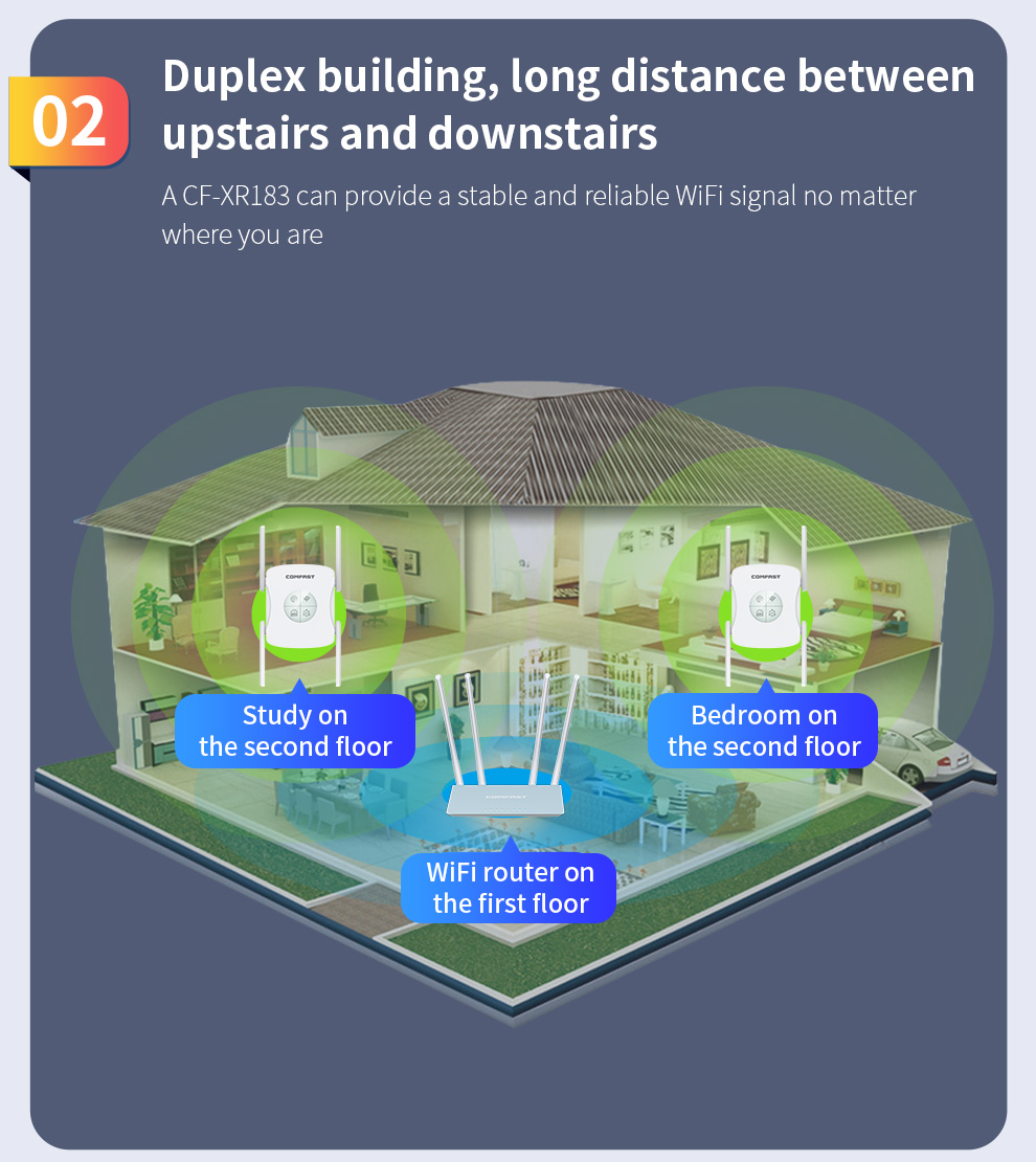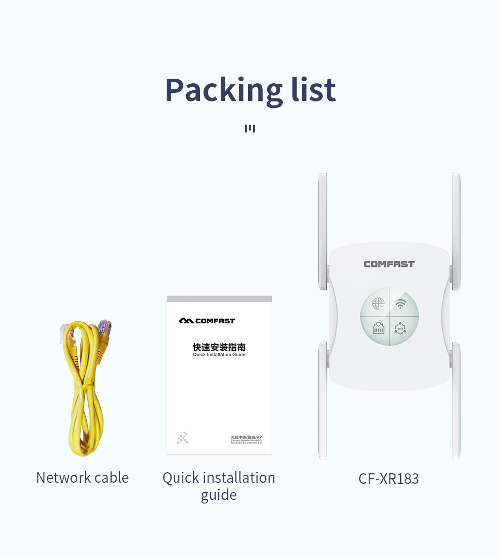*The product images and demonstration scenarios on this page are for illustrative purposes only and may have slight differences from the actual product. Please refer to the physical product for accuracy. *The data on this page are theoretical values obtained from COMFAST’s internal laboratory under specific testing conditions. Actual usage may vary due to individual product differences, software versions, usage conditions, and environmental factors. Please refer to real-world usage for accurate representation. *To provide as accurate product information, specifications, and features as possible, COMFAST may periodically adjust and revise the text descriptions, image effects, and other content on this page to ensure alignment with actual product performance, specifications, packaging, and accessories. Should such adjustments or revisions become necessary, no prior notice will be provided.