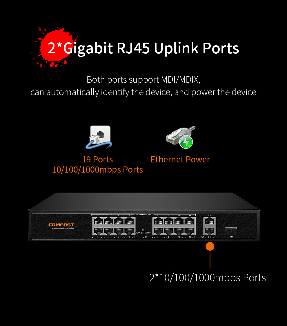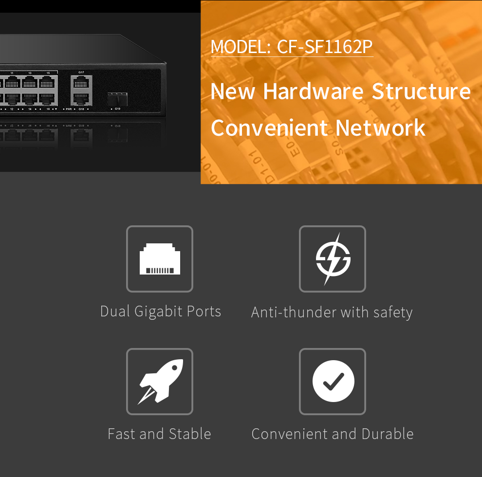 19 ports smart 100M/Gigaself-Adaption PoE Switch