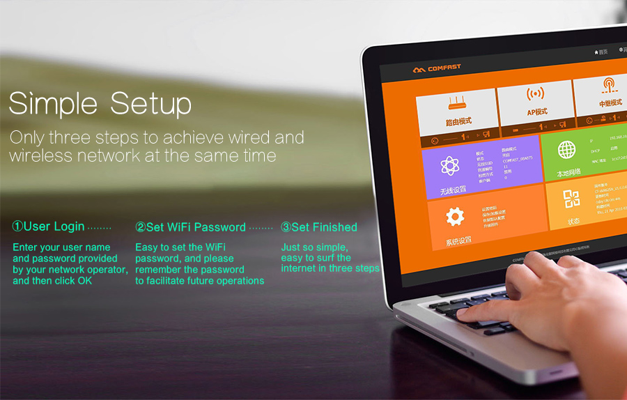 *The product images and demonstration scenarios on this page are for illustrative purposes only and may have slight differences from the actual product. Please refer to the physical product for accuracy. *The data on this page are theoretical values obtained from COMFAST’s internal laboratory under specific testing conditions. Actual usage may vary due to individual product differences, software versions, usage conditions, and environmental factors. Please refer to real-world usage for accurate representation. *To provide as accurate product information, specifications, and features as possible, COMFAST may periodically adjust and revise the text descriptions, image effects, and other content on this page to ensure alignment with actual product performance, specifications, packaging, and accessories. Should such adjustments or revisions become necessary, no prior notice will be provided.