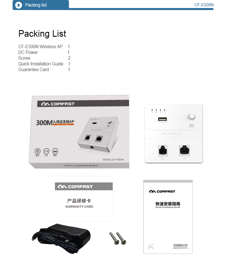 *The product images and demonstration scenarios on this page are for illustrative purposes only and may have slight differences from the actual product. Please refer to the physical product for accuracy. *The data on this page are theoretical values obtained from COMFAST’s internal laboratory under specific testing conditions. Actual usage may vary due to individual product differences, software versions, usage conditions, and environmental factors. Please refer to real-world usage for accurate representation. *To provide as accurate product information, specifications, and features as possible, COMFAST may periodically adjust and revise the text descriptions, image effects, and other content on this page to ensure alignment with actual product performance, specifications, packaging, and accessories. Should such adjustments or revisions become necessary, no prior notice will be provided.