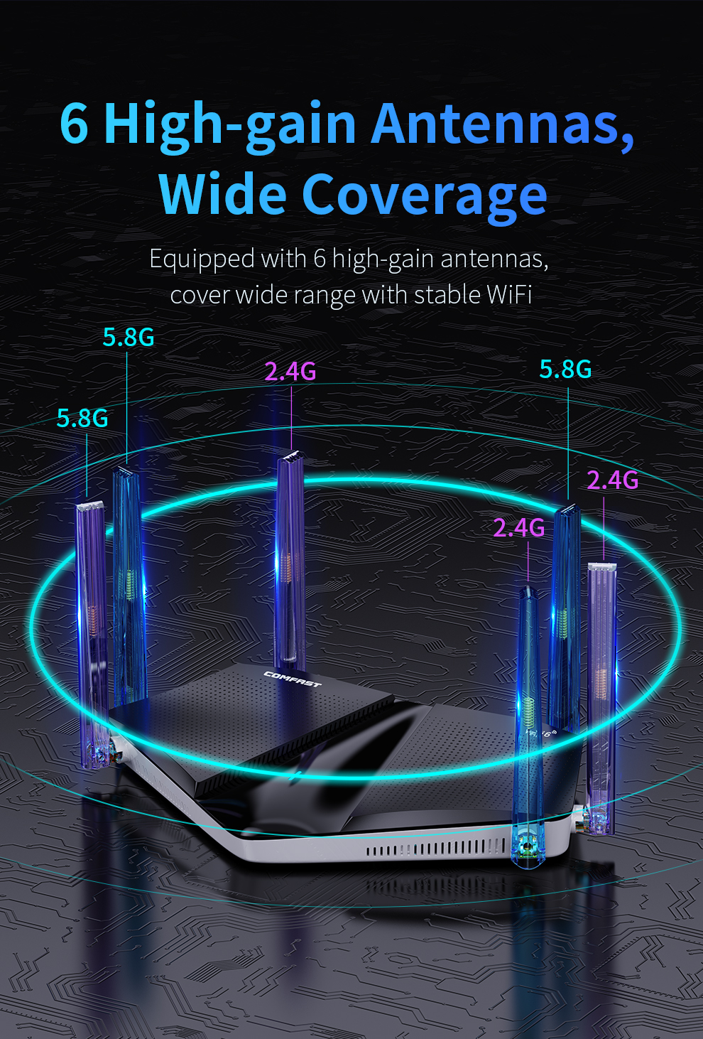 The CF-WR633AX is a high-speed Wi-Fi 6 smart mesh router offering high bandwidth, low latency, and wide coverage. Its mesh functionality ensures easy networking and full coverage in large, complex environments.