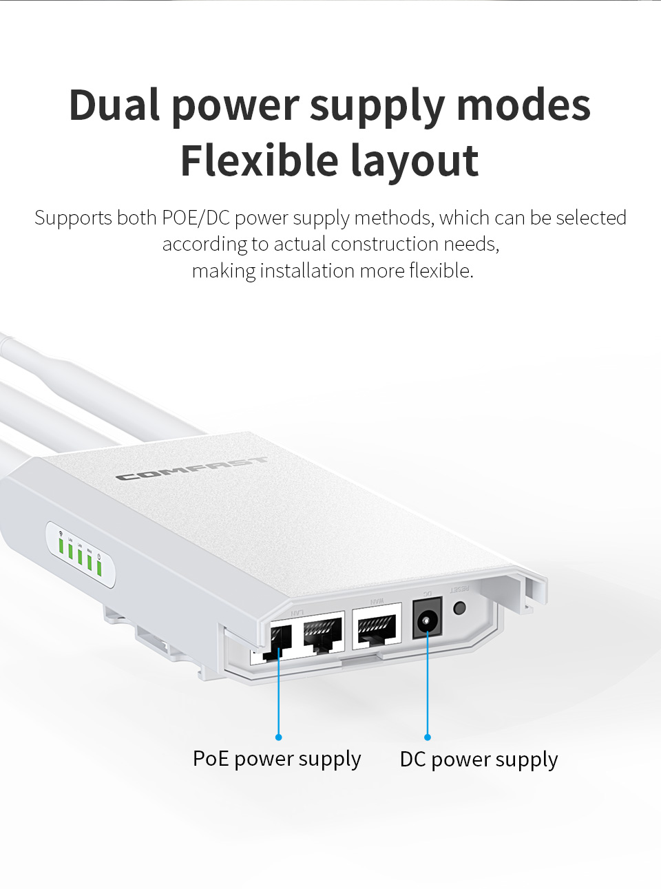 Power: PoE and DC support, flexible deployment.