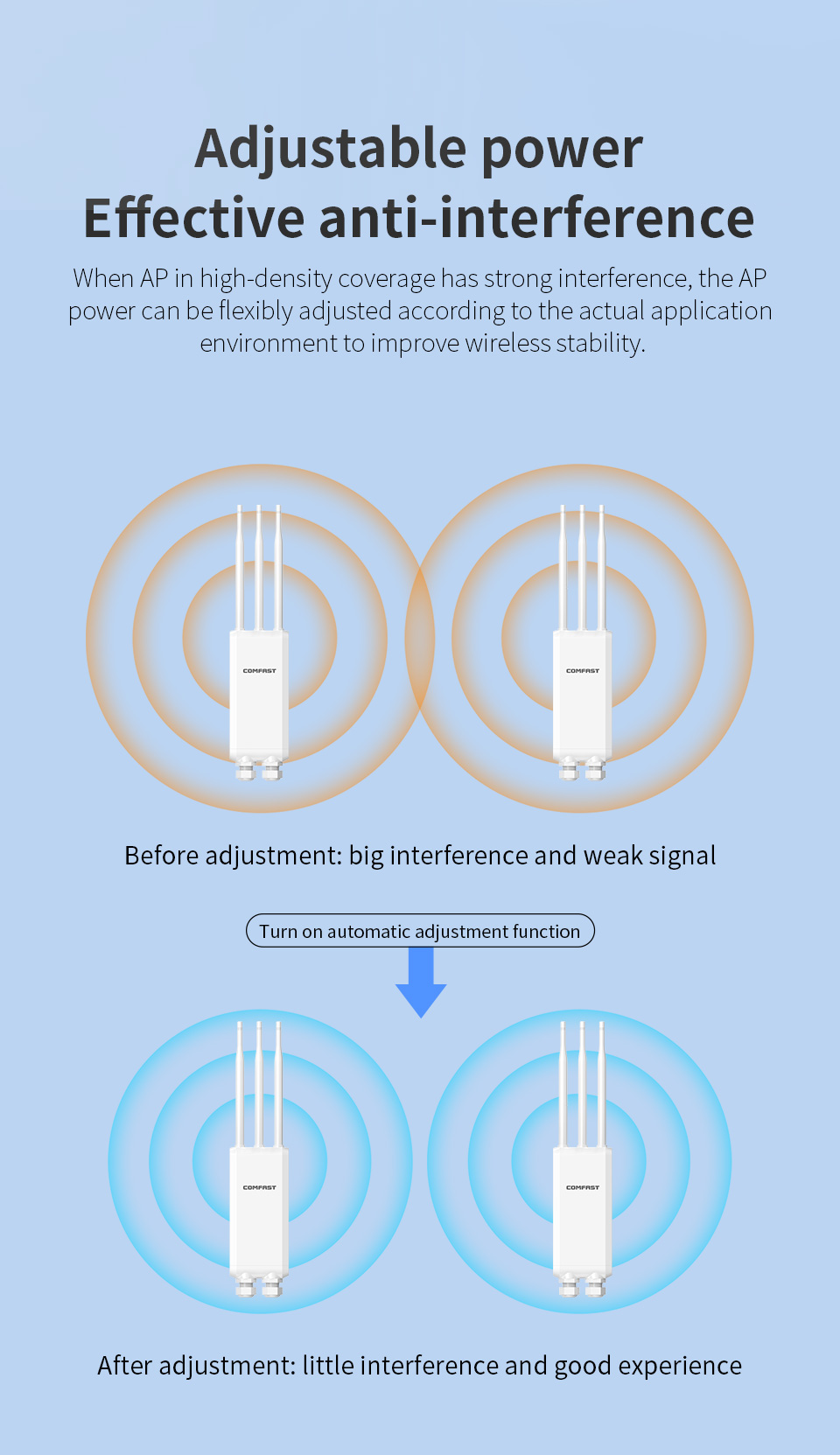 Adjustable Power: Reduces AP interference.