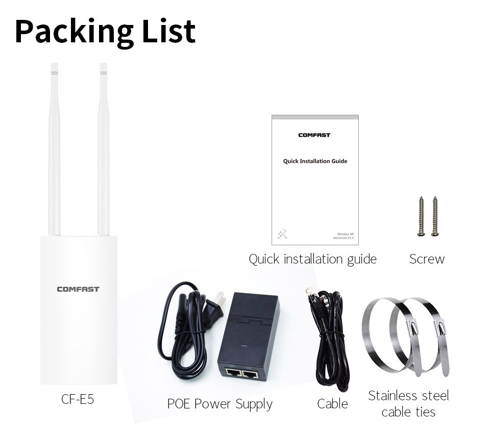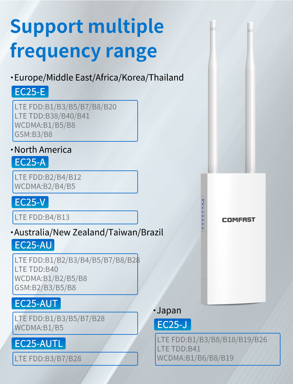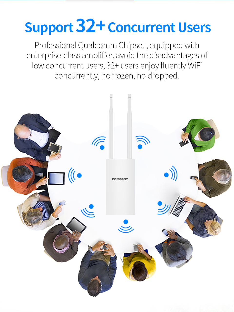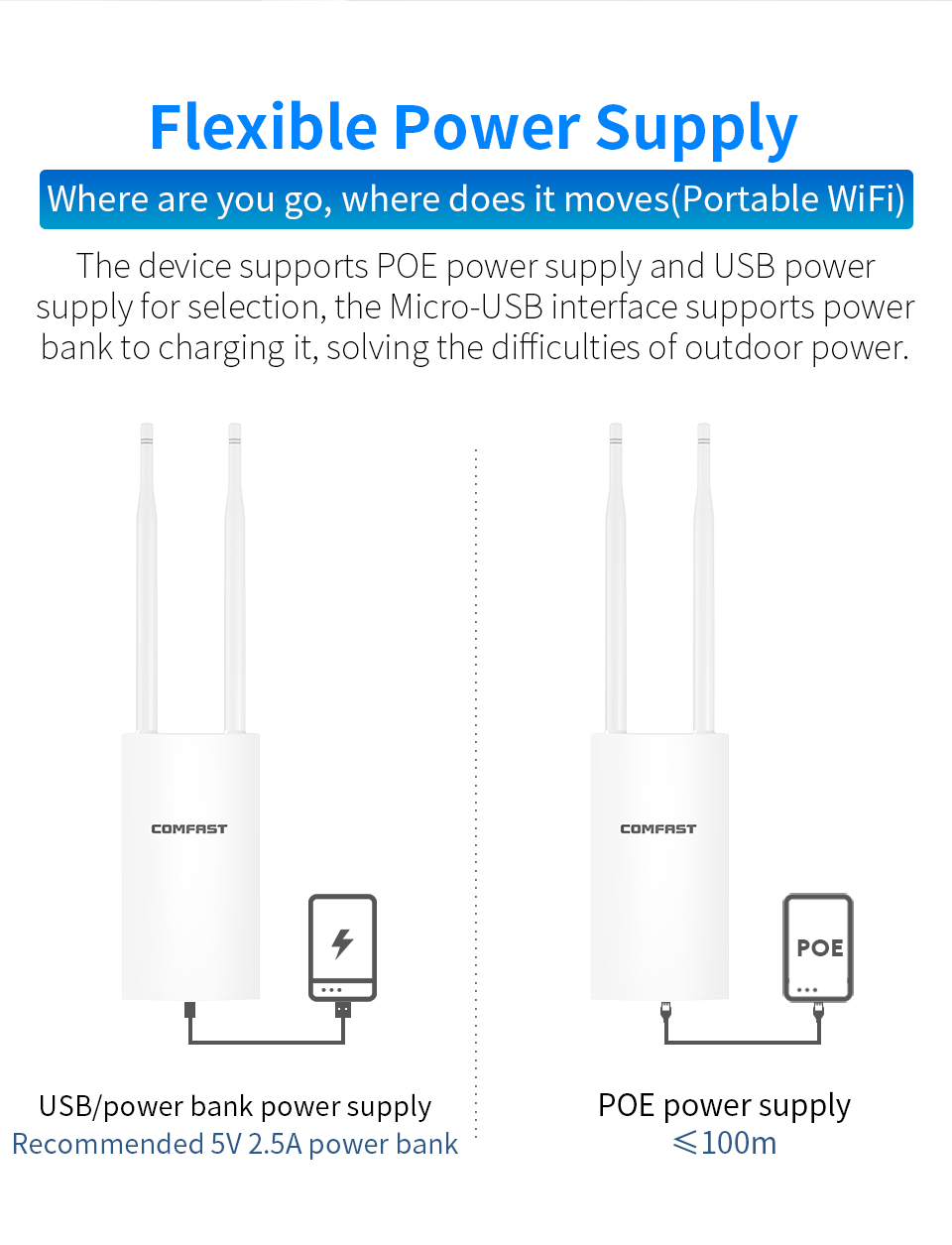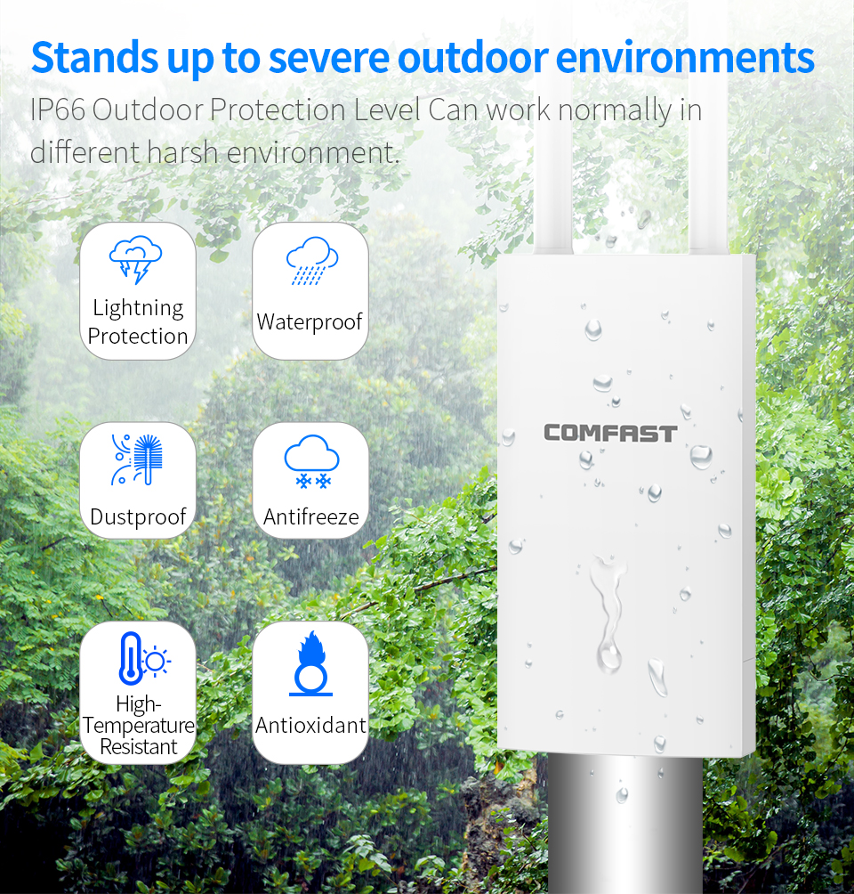 *The product images and demonstration scenarios on this page are for illustrative purposes only and may have slight differences from the actual product. Please refer to the physical product for accuracy. *The data on this page are theoretical values obtained from COMFAST’s internal laboratory under specific testing conditions. Actual usage may vary due to individual product differences, software versions, usage conditions, and environmental factors. Please refer to real-world usage for accurate representation. *To provide as accurate product information, specifications, and features as possible, COMFAST may periodically adjust and revise the text descriptions, image effects, and other content on this page to ensure alignment with actual product performance, specifications, packaging, and accessories. Should such adjustments or revisions become necessary, no prior notice will be provided.