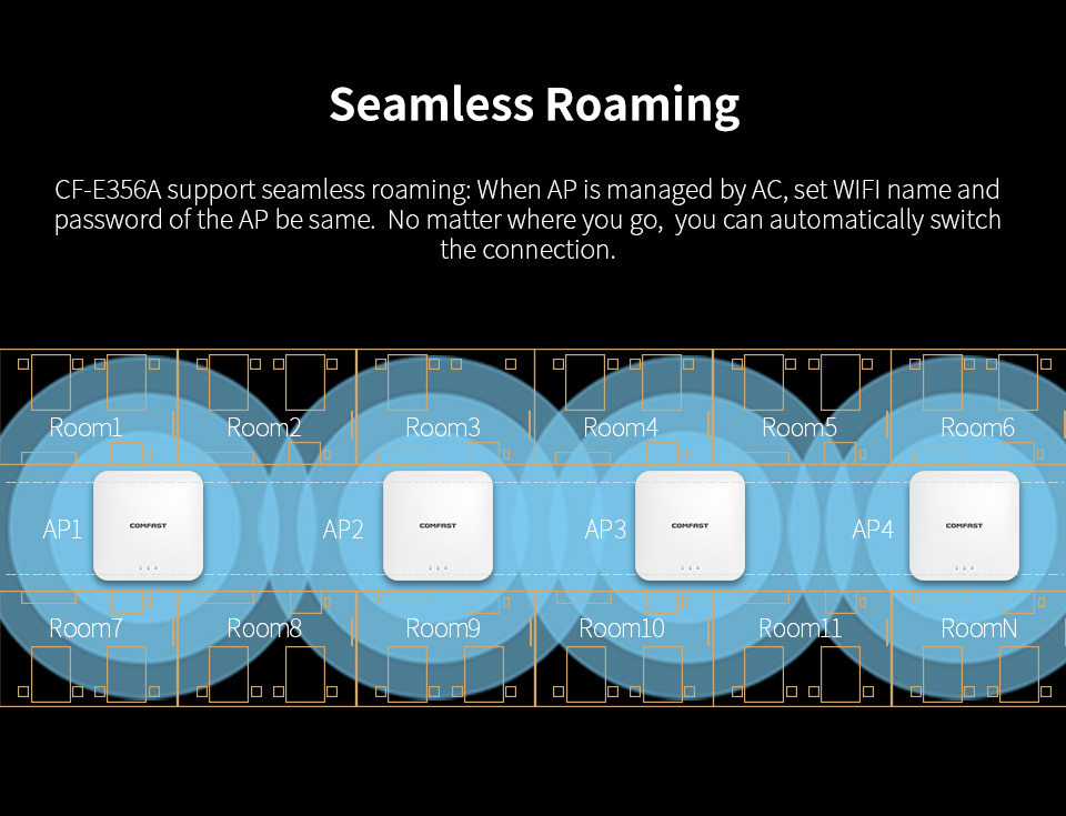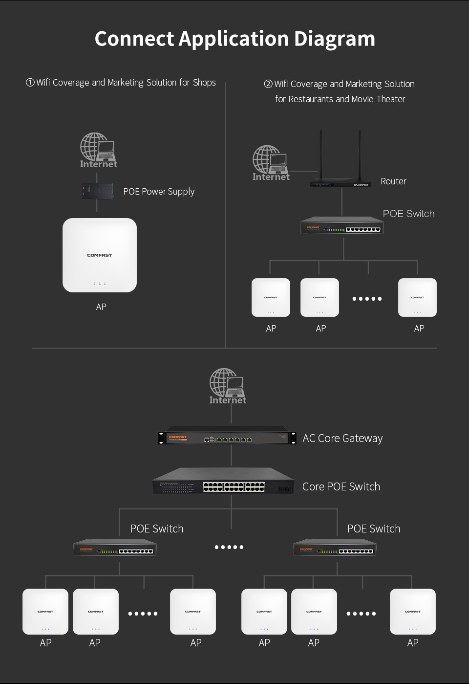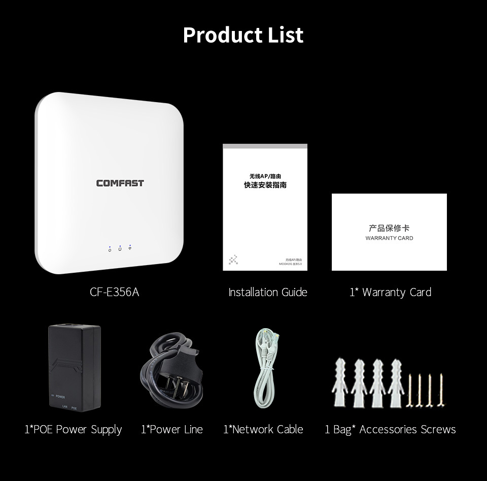 *The product images and demonstration scenarios on this page are for illustrative purposes only and may have slight differences from the actual product. Please refer to the physical product for accuracy. *The data on this page are theoretical values obtained from COMFAST’s internal laboratory under specific testing conditions. Actual usage may vary due to individual product differences, software versions, usage conditions, and environmental factors. Please refer to real-world usage for accurate representation. *To provide as accurate product information, specifications, and features as possible, COMFAST may periodically adjust and revise the text descriptions, image effects, and other content on this page to ensure alignment with actual product performance, specifications, packaging, and accessories. Should such adjustments or revisions become necessary, no prior notice will be provided.