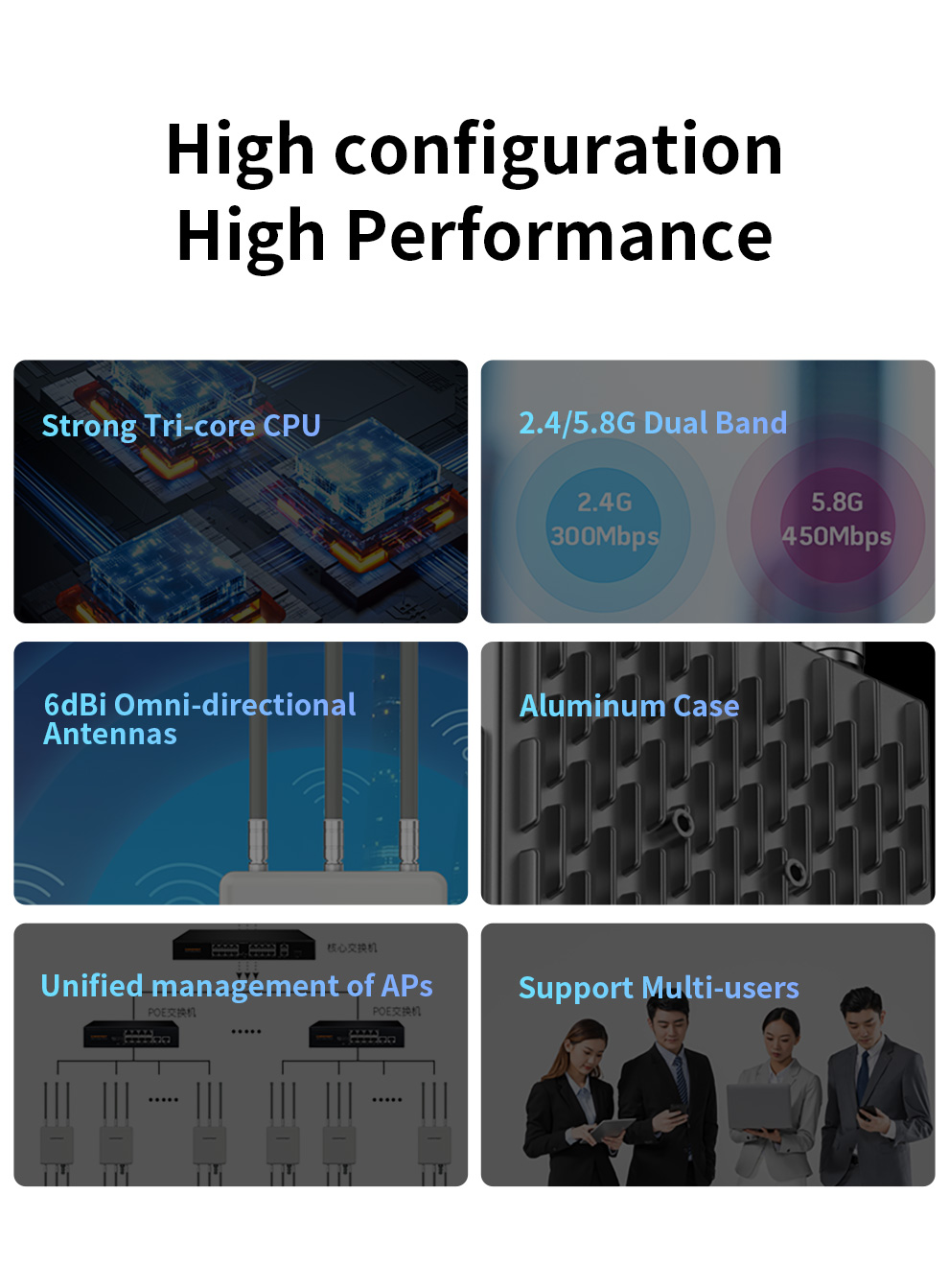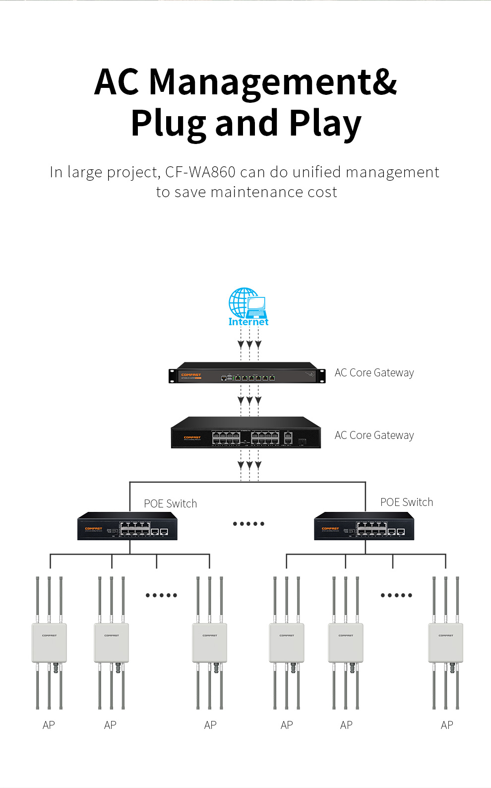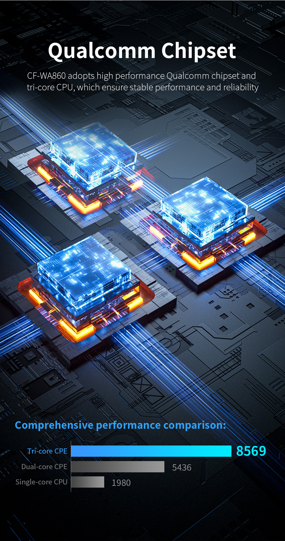 *The product images and demonstration scenarios on this page are for illustrative purposes only and may have slight differences from the actual product. Please refer to the physical product for accuracy. *The data on this page are theoretical values obtained from COMFAST’s internal laboratory under specific testing conditions. Actual usage may vary due to individual product differences, software versions, usage conditions, and environmental factors. Please refer to real-world usage for accurate representation. *To provide as accurate product information, specifications, and features as possible, COMFAST may periodically adjust and revise the text descriptions, image effects, and other content on this page to ensure alignment with actual product performance, specifications, packaging, and accessories. Should such adjustments or revisions become necessary, no prior notice will be provided.