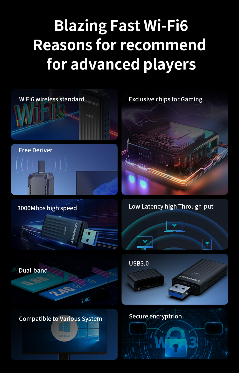 A whole new generation WiFi6 AX3000 USB E-sports wireless adapter,High speed Internet,