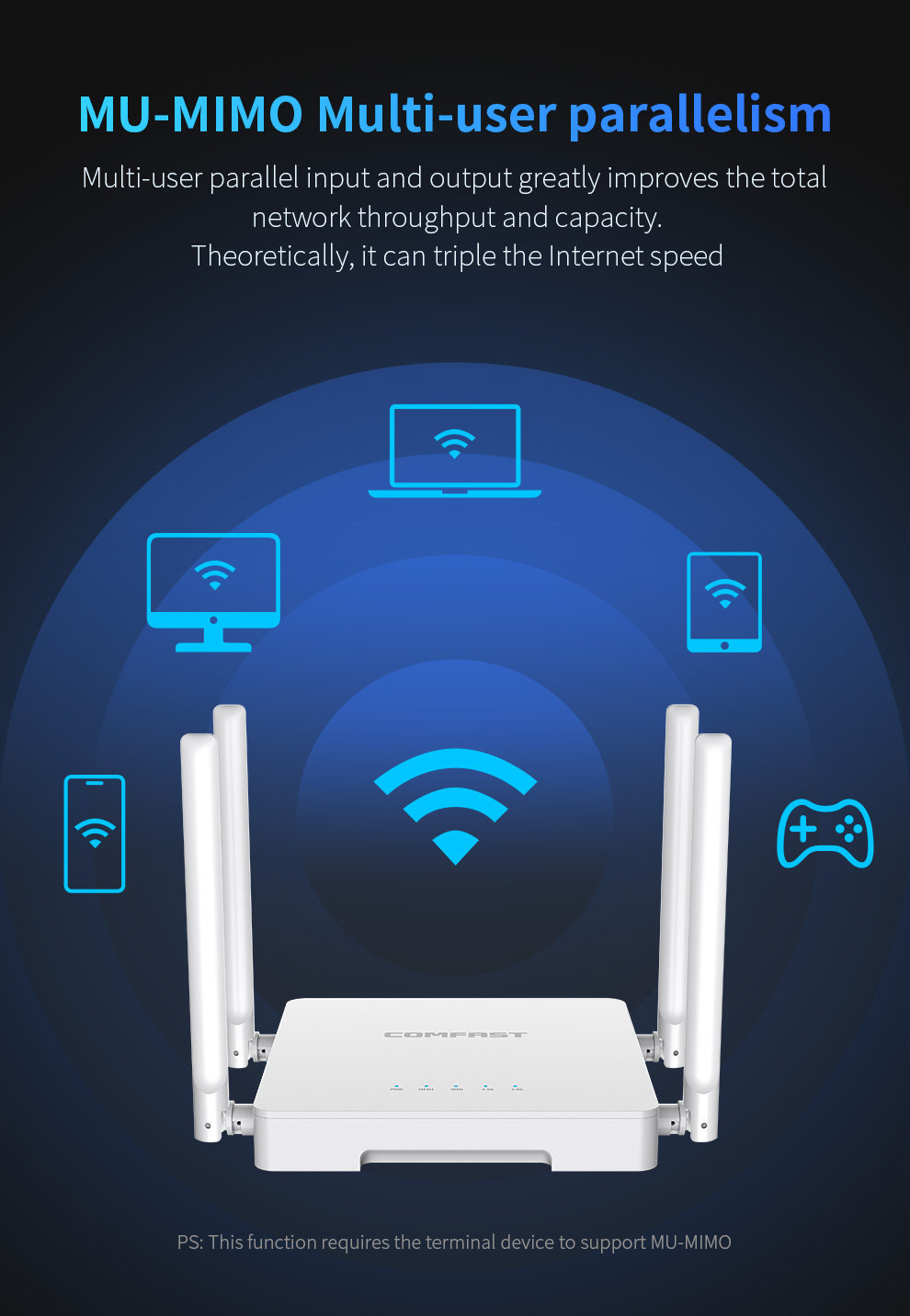 *The product images and demonstration scenarios on this page are for illustrative purposes only and may have slight differences from the actual product. Please refer to the physical product for accuracy. *The data on this page are theoretical values obtained from COMFAST’s internal laboratory under specific testing conditions. Actual usage may vary due to individual product differences, software versions, usage conditions, and environmental factors. Please refer to real-world usage for accurate representation. *To provide as accurate product information, specifications, and features as possible, COMFAST may periodically adjust and revise the text descriptions, image effects, and other content on this page to ensure alignment with actual product performance, specifications, packaging, and accessories. Should such adjustments or revisions become necessary, no prior notice will be provided.