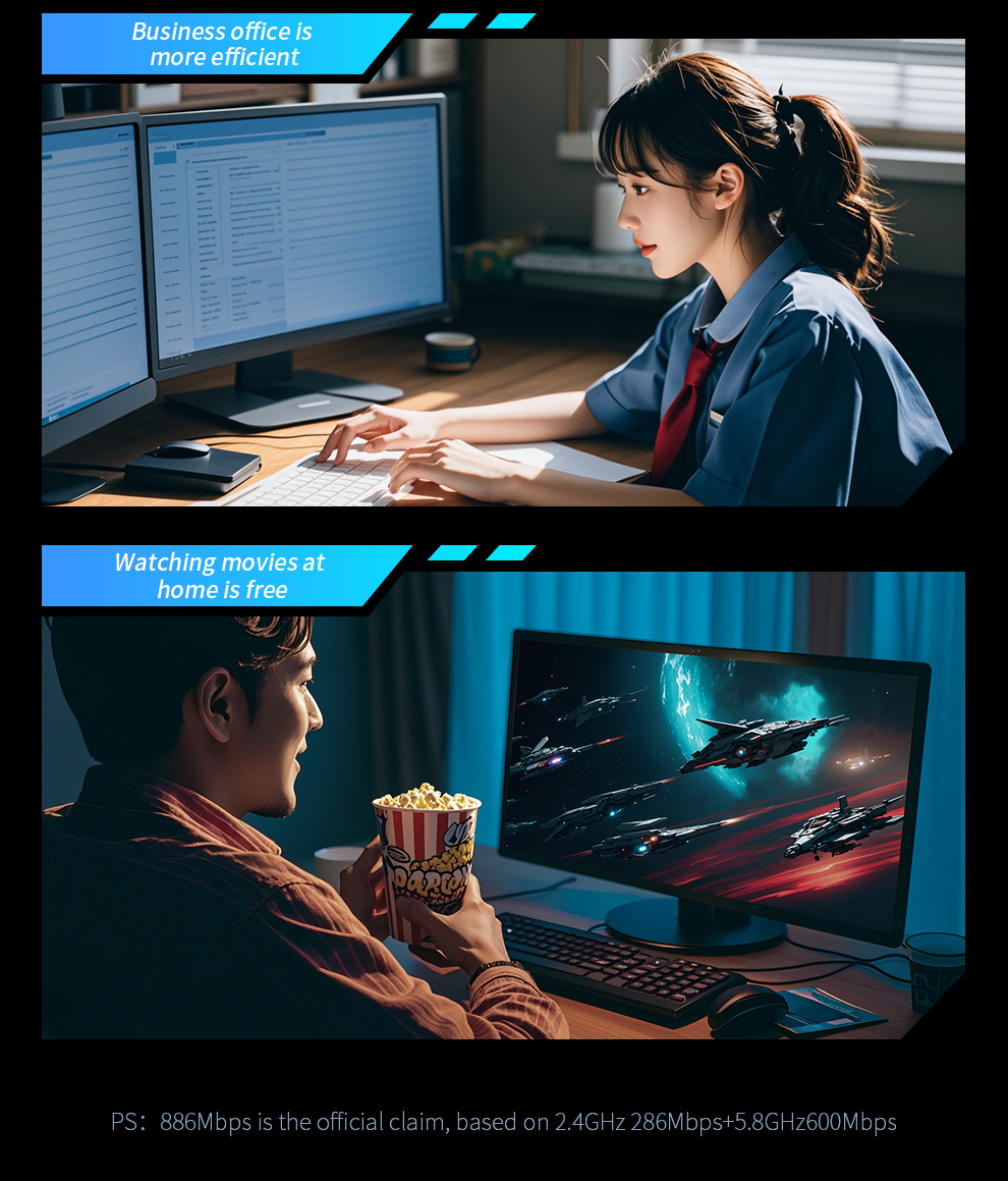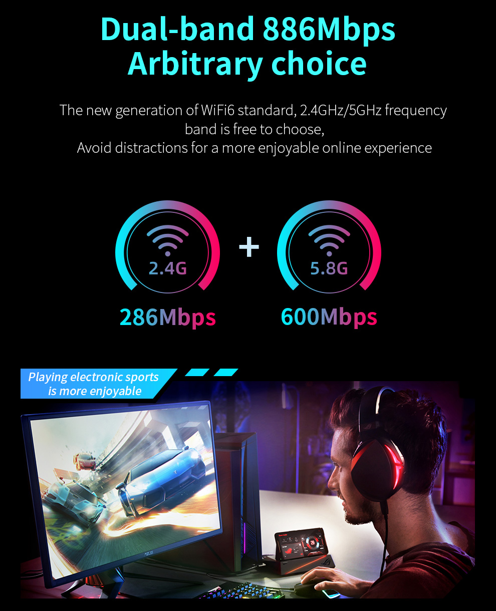 | Wireless Rate | 2.4GHz:286Mbps;5.8GHz:600Mbps; |