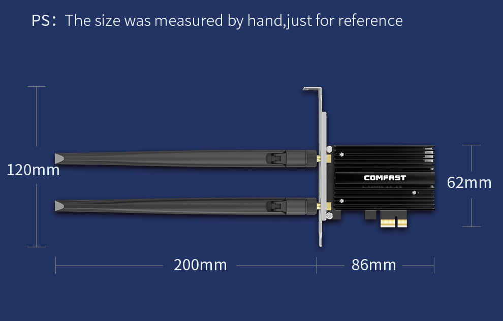 The CF-AX200 Pro is a PCI-E network card with WiFi 6, 2974Mbps dual-band (2.4 & 5.8GHz), and Bluetooth 5.2, perfect for WiFi 6 routers.
