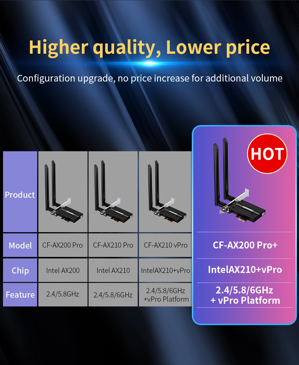 Affordable Intel AX200 price, premium AX210+ vPro quality