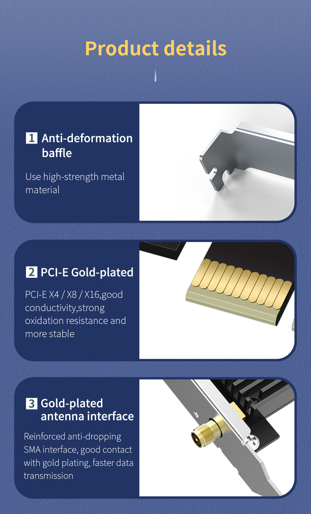• Anti-oxidation gold fingers ensure sensitive signal transmission