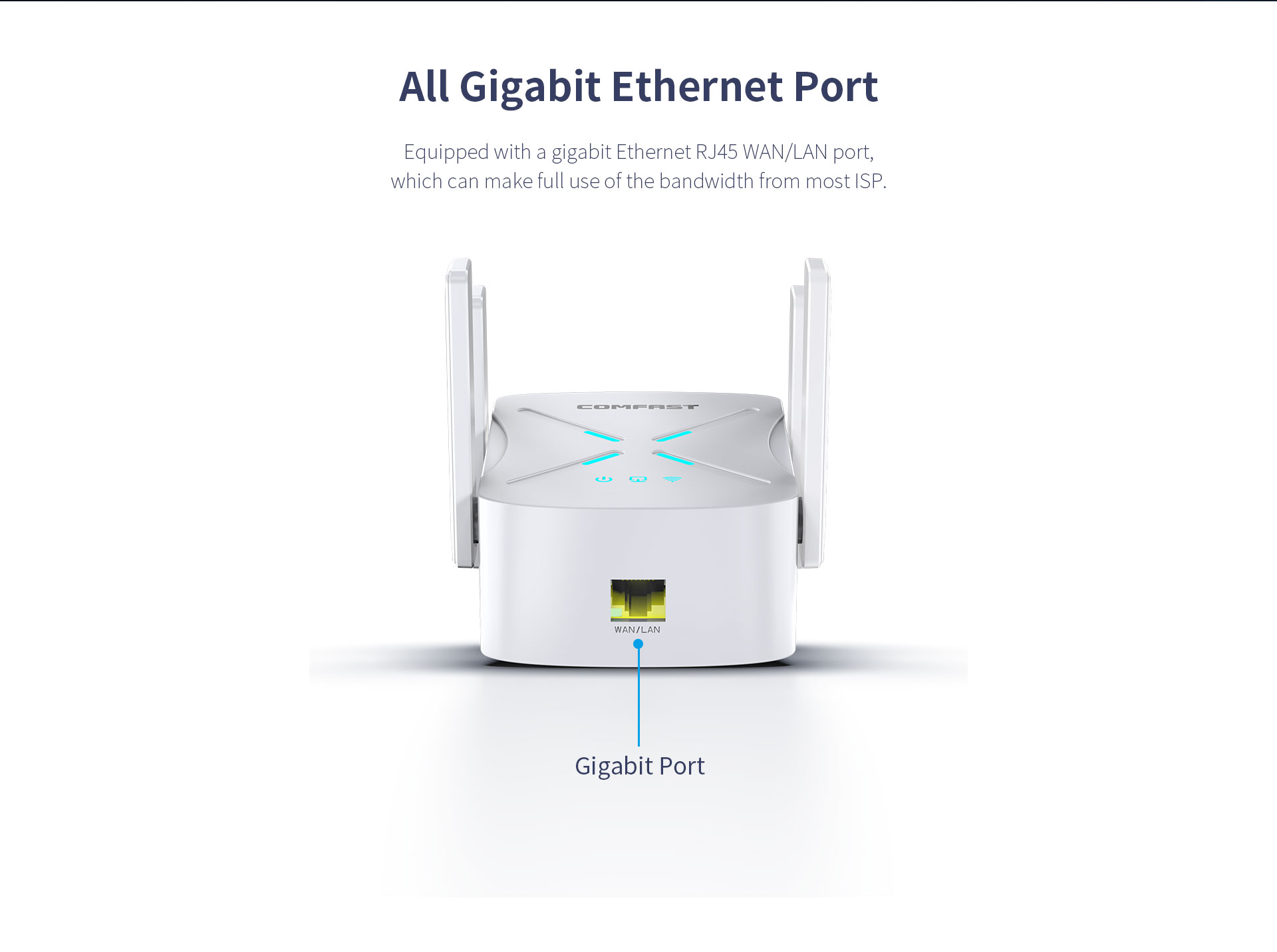 Gigabit Ethernet port enables stable wireless-to-wired conversion